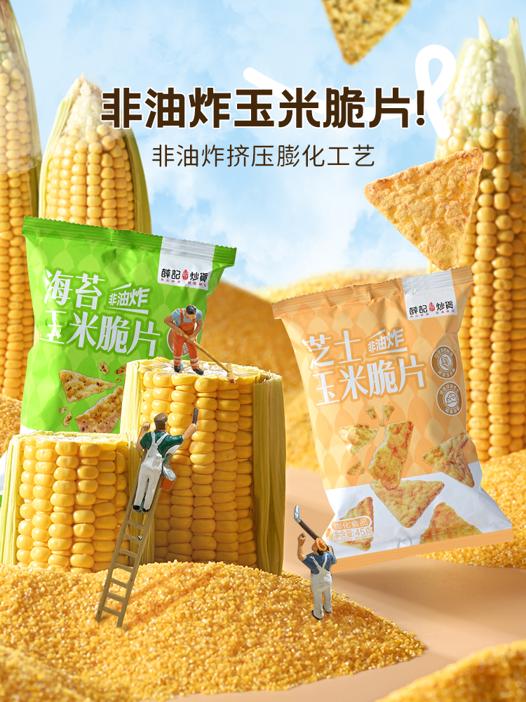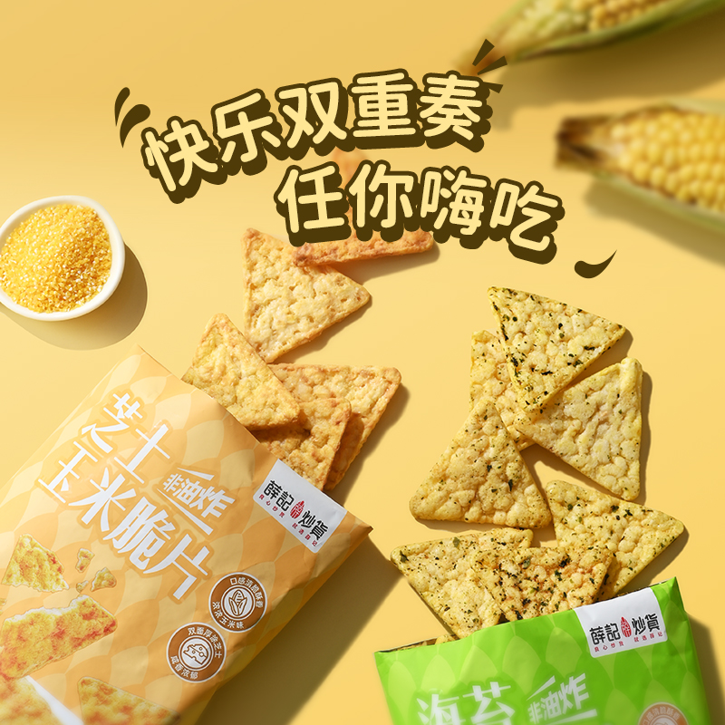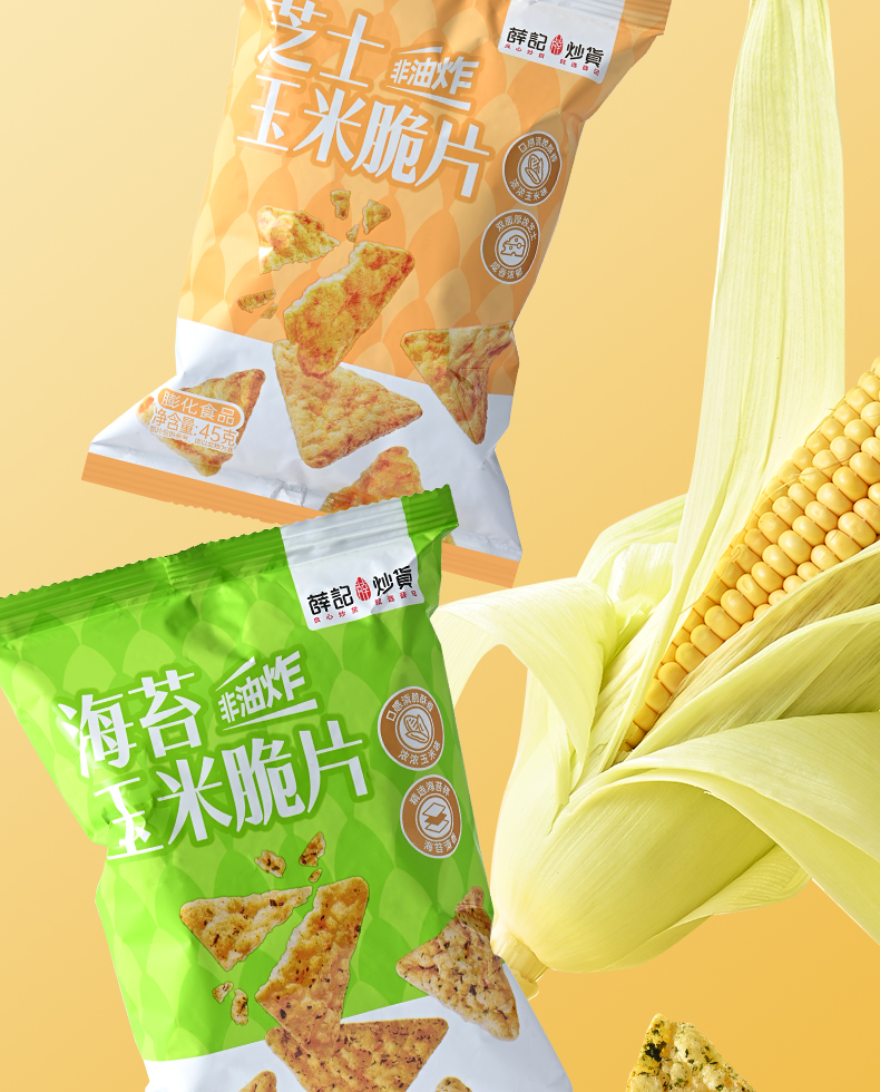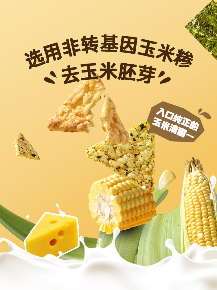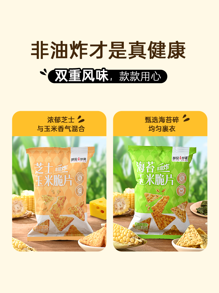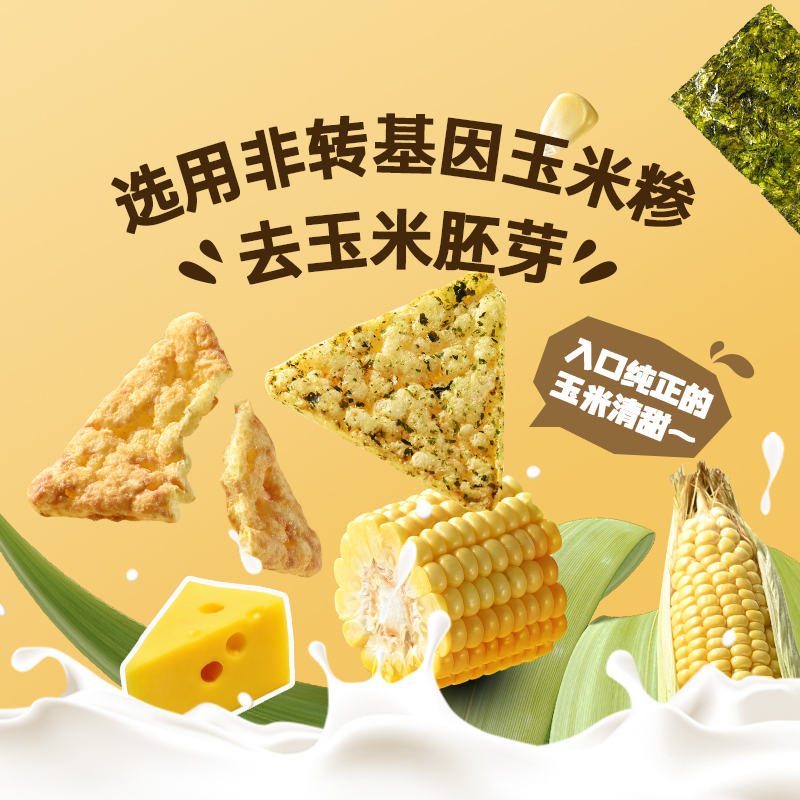 - ¥9.90海苔玉米脆片45g*1袋+芝士玉米脆片45g*1袋,0反式脂肪酸 非油炸