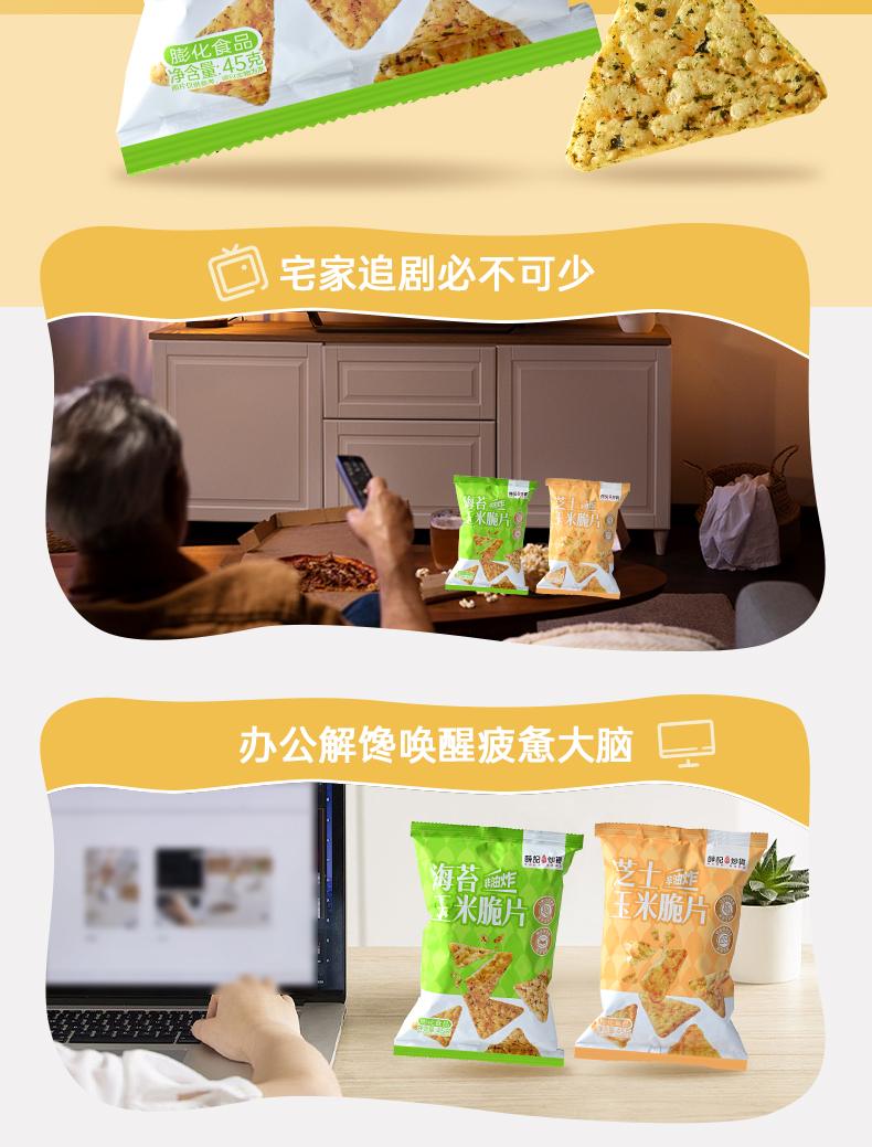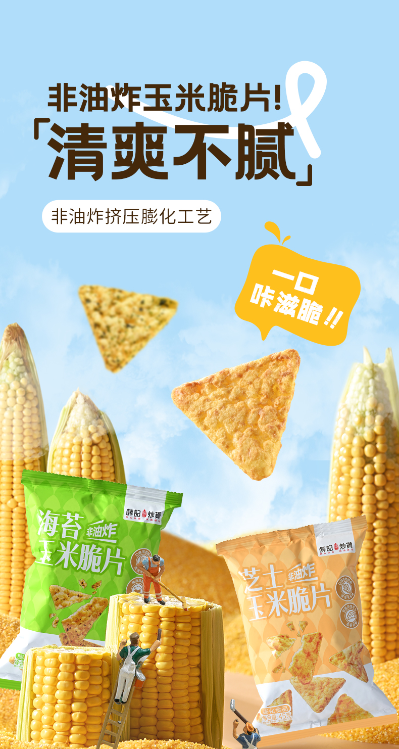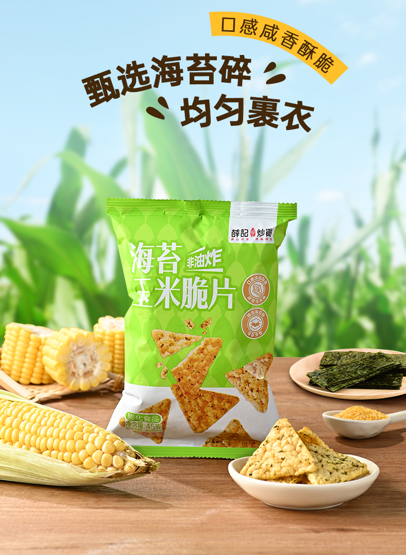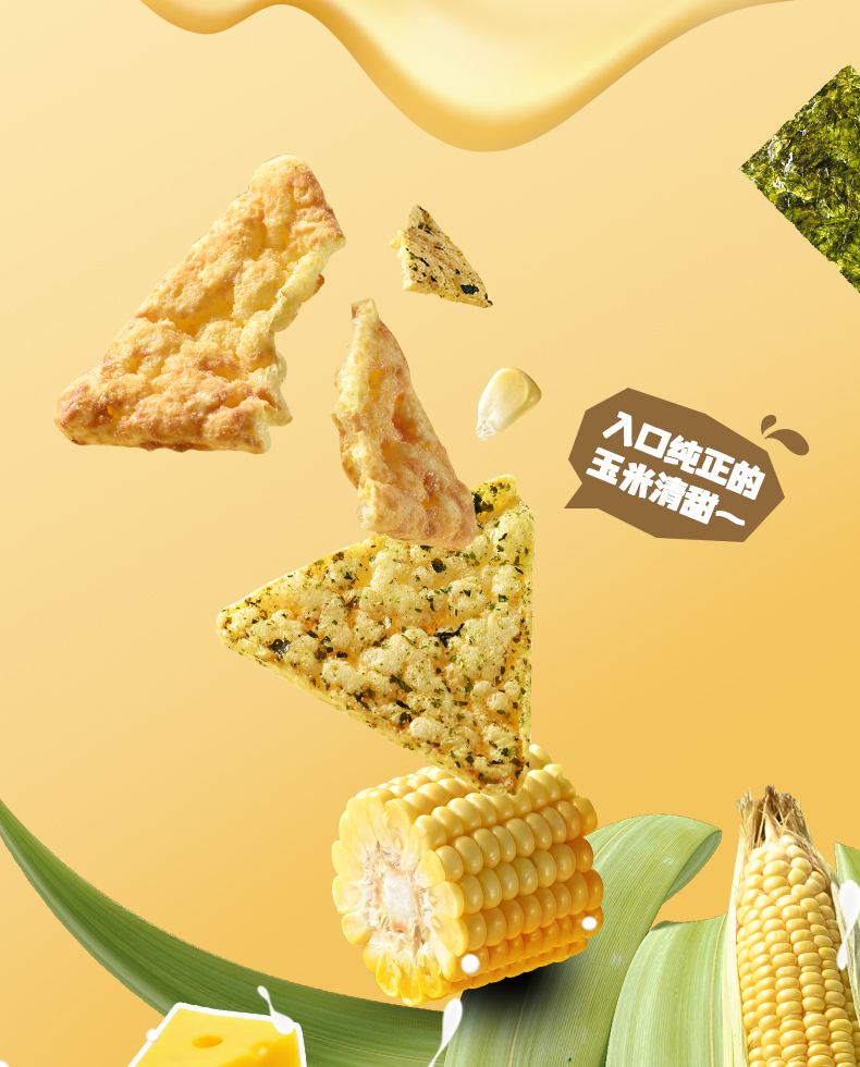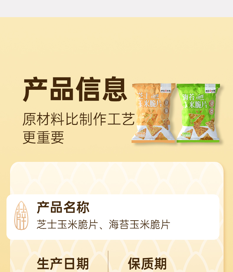 - ¥9.90海苔玉米脆片45g*1袋+芝士玉米脆片45g*1袋,0反式脂肪酸 非油炸