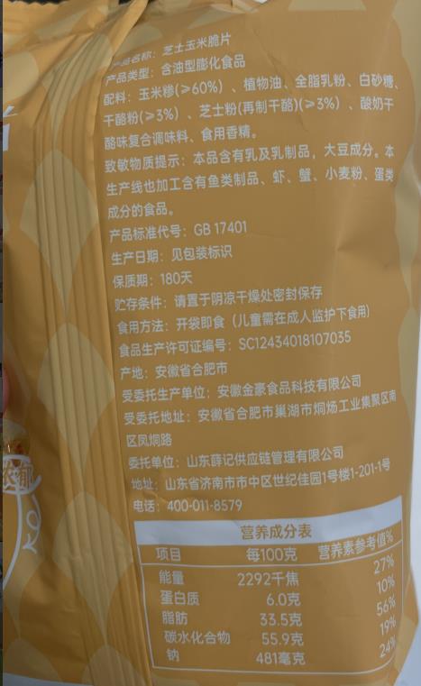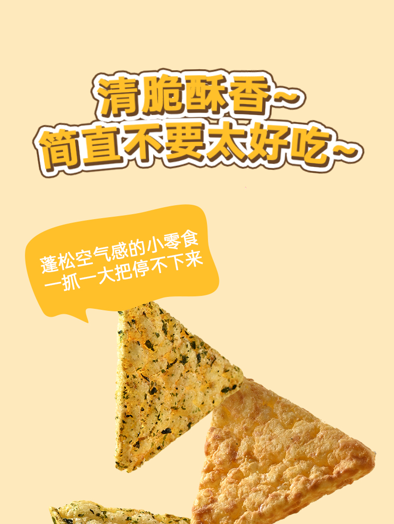 这款玉米脆片口感很好,芝士和海苔的味道都很浓郁,没有反式脂肪酸,健康又美味。