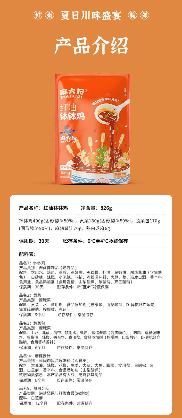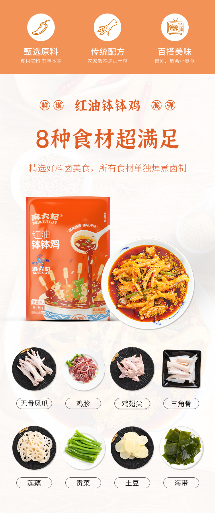 【店铺上新】麻六记红油钵钵鸡826g4荤4素大克重超满足冷吃麻辣鲜香