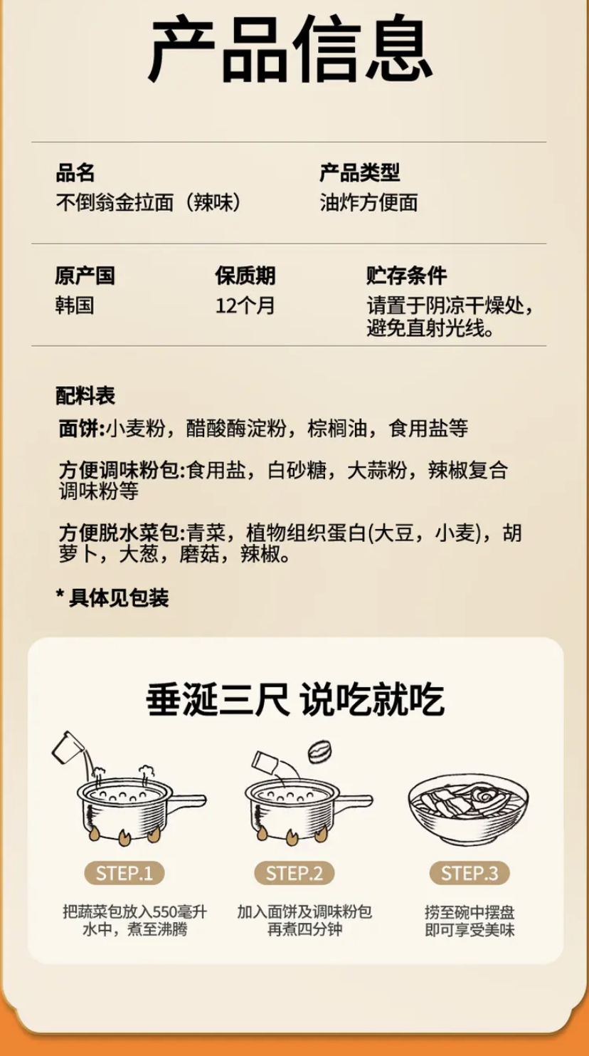 总之,这次购物体验非常满意,不倒翁金拉面无论是从口感、性价比还是便利性上,都给了我极大的惊喜。已经推荐给周围的朋友了,相信他们也会爱上这份来自韩国的地道美味!下次还会继续回购,希望能有更多优惠活动哦!