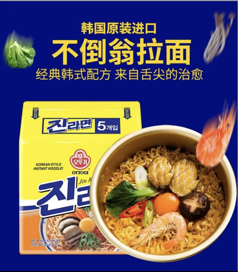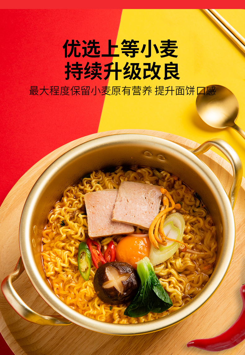 - ¥29.90 (5连组合)金拉面辣味1包+金拉面原味1包+火热拉面1包+芝士拉面1包+泡菜拉面1包591g*1包