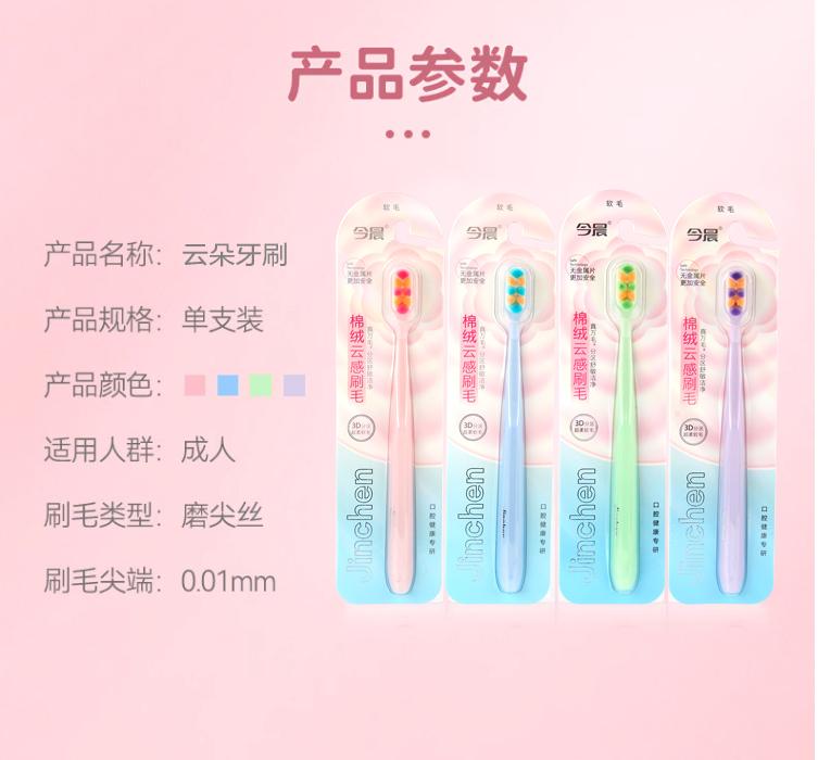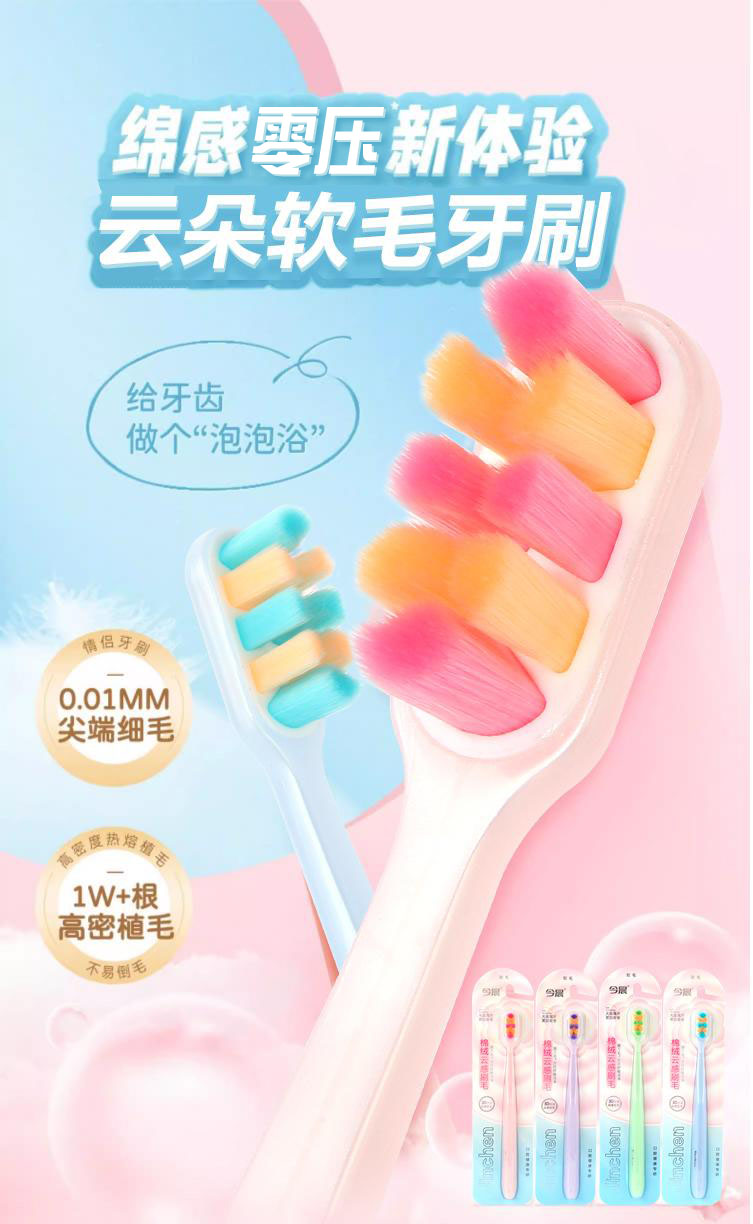 自从用了今晨的这款超软云朵细丝牙刷,真的是打开了新世界的大门!首先,牙刷的刷毛真的超级软,对牙齿和牙龈都非常温柔,每天刷牙都成了一种享受。特别是对于学生党来说,这样舒适的刷牙体验真是太重要了,能很好地保护我们娇嫩的口腔