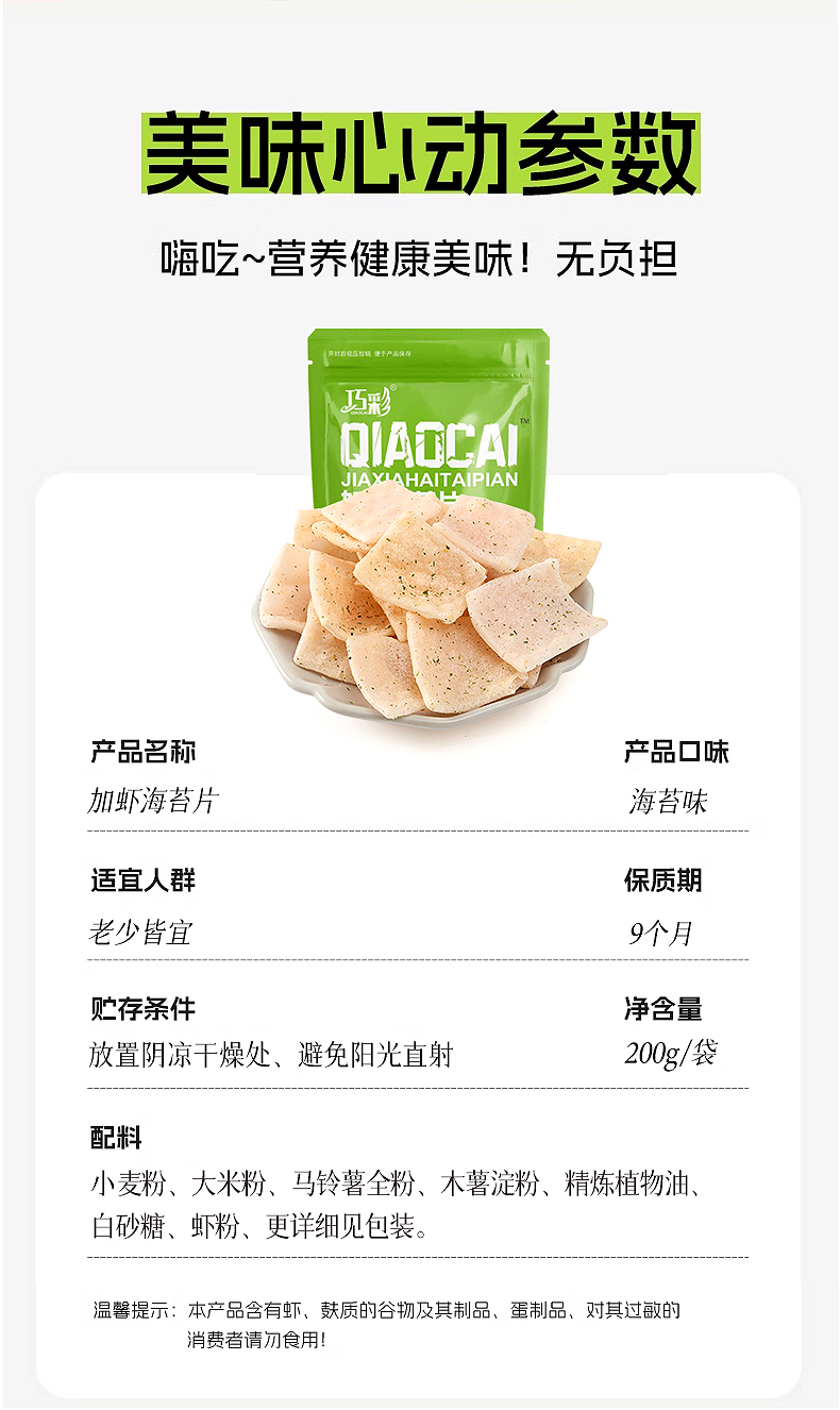 - ¥13.70 番茄味薯条200g*1袋+加虾海苔片200g*1袋