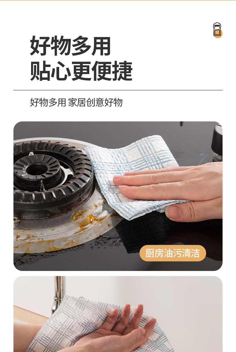 自从用了这款固牛懒人抹布,我的厨房清洁工作变得既轻松又高效!这款抹布真的是干湿两用,超级方便。干用时,它能轻松擦去台面上的灰尘和食物残渣;湿用时,吸水性强,油渍一擦即净,完全不留痕迹。每次用完直接扔掉,再也不用担心抹布滋生细菌的问题了,真的是既卫生又省心。 我特别喜欢它的加厚设计,比起普通的厨房纸巾更加耐用,不易破损,擦起来也更加顺手。而且尺寸刚刚好(28mm*30mm),无论是清洁碗筷还是擦拭灶台,都能轻松应对,不会浪费也不会觉得不够用。 价格方面,我觉得非常合理。虽然单卷看起来单价稍高,但考虑到它的实用性和便利性,以及每次购买多卷时的优惠力度,性价比真的很高。我买了三卷装,足够家里用好一阵子了,而且算下来每卷的单价更划算,感觉非常超值! 总的来说,固牛懒人抹布是我近期购买的厨房用品中最满意的一件,强烈推荐给每一位追求高效清洁、注重生活品质的朋友们!