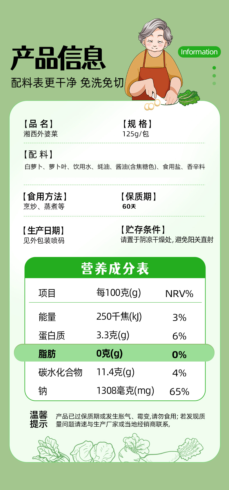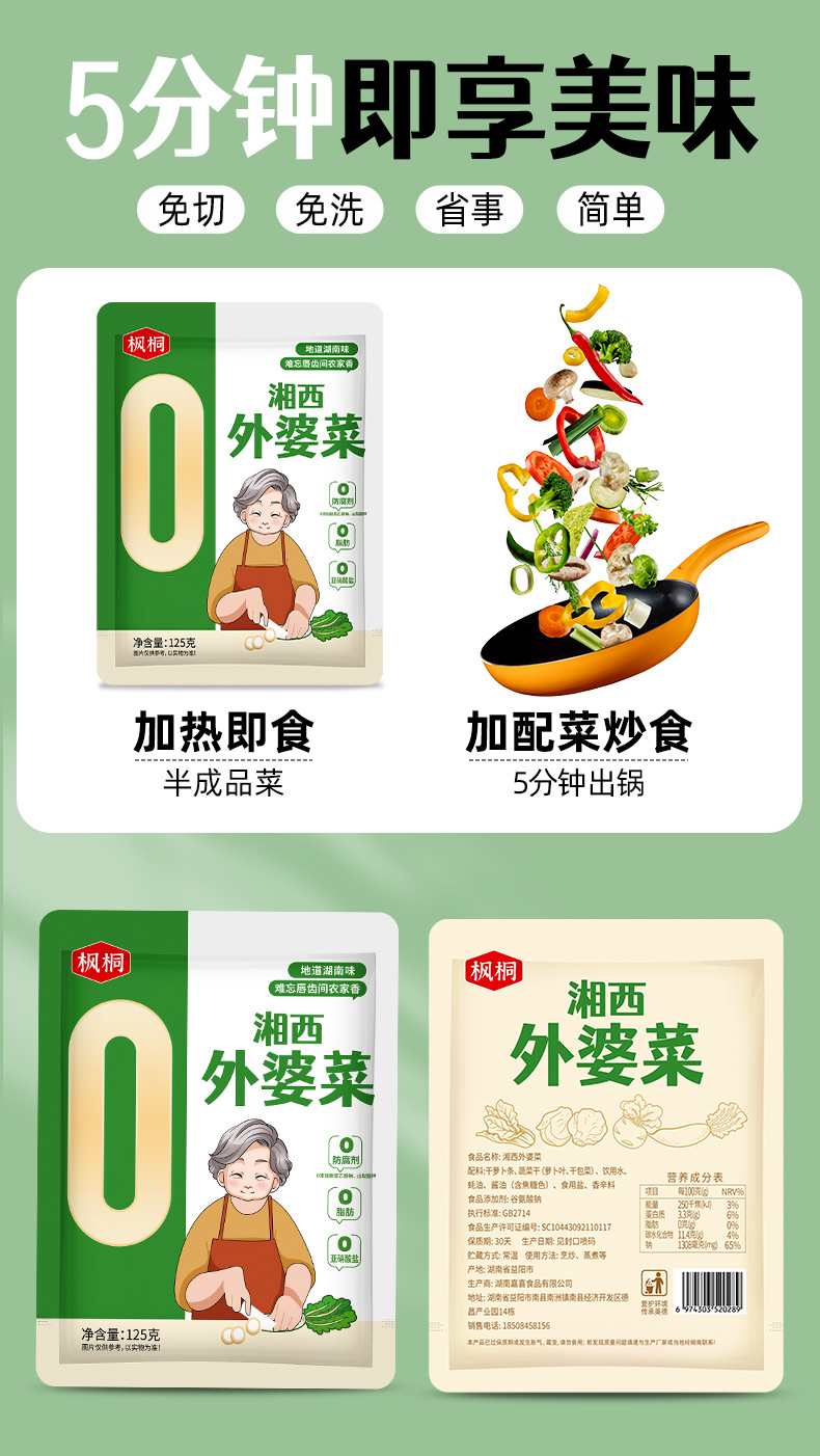 这款湘西外婆菜非常好吃,口感鲜美,咸度适中,非常下饭。而且配料表非常干净,没有任何添加剂,吃起来更健康。