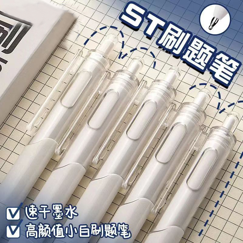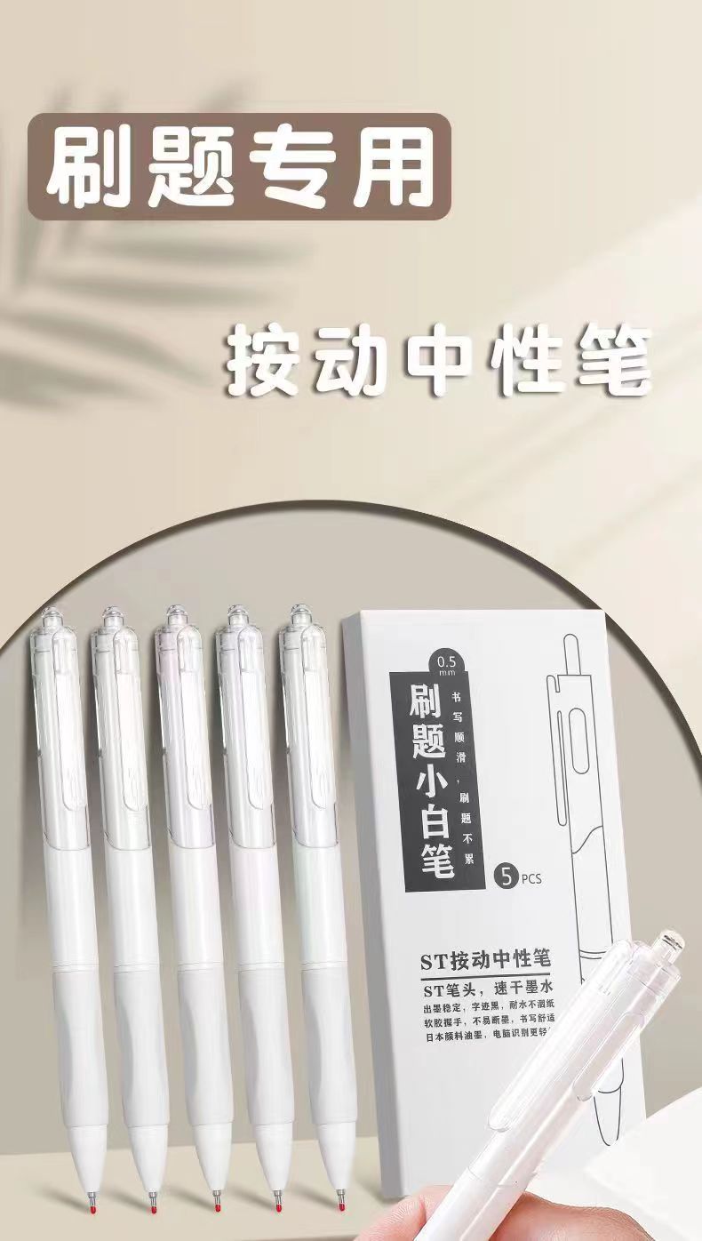 【老师推荐】学习办公中性笔四盒20支小白笔速干按压动式笔