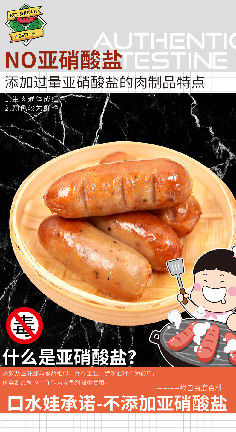 非常满意这次购买的【B:口水娃火山石风味肉肠】!首先,包装非常结实,打开后每根肉肠都完好无损,而且独立包装的设计既方便携带又卫生。规格上,原味415g*3包加上黑胡椒味415g*2包,总共50根,量足实惠,特别适合家庭分享或是囤货备用。 口感方面,原味的肉肠肉质鲜嫩多汁,保留了肉质的原汁原味,吃起来非常满足;而黑胡椒味的则更加香辣可口,黑胡椒的香气完美融入了肉肠中,每一口都是味蕾的享受。火山石烤制的工艺让肉肠外焦里嫩,咬下去既有嚼劲又不失肉质的细腻,真的是让人欲罢不能。 价格方面,39.90元能买到这么多根品质上乘的肉肠,性价比非常高,比外面卖的很多同类产品都要划算。无论是作为早餐、零食还是野餐烧烤的食材,都是极佳的选择。 总之,这次购物体验非常满意,已经推荐给家人和朋友了,以后还会回购的!希望店家能一直保持这样的品质和服务!