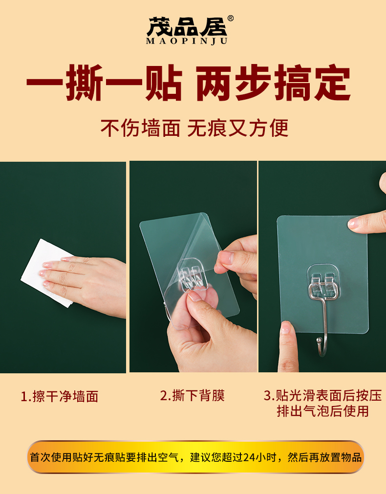 非常满意这个挂钩,很结实,粘在墙上不会掉下来。