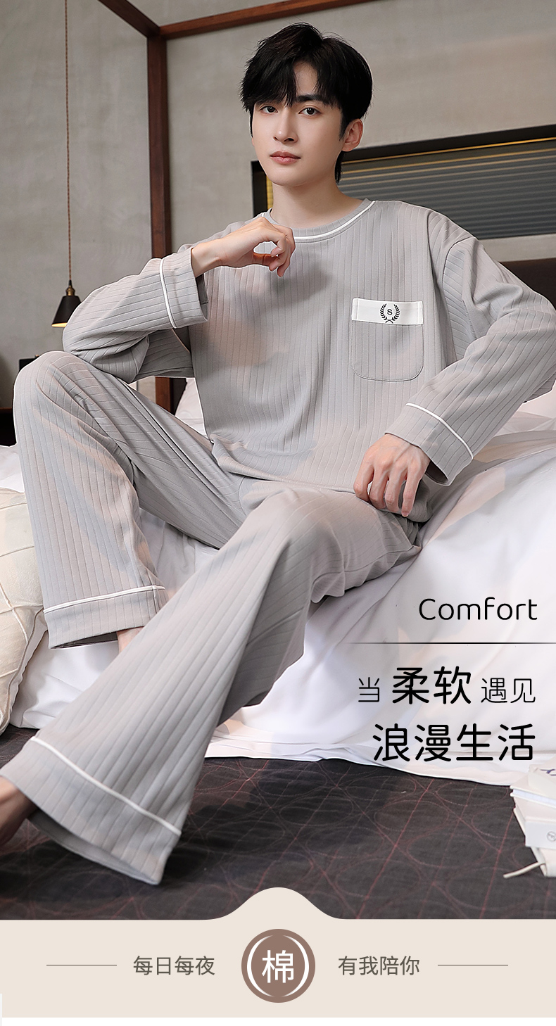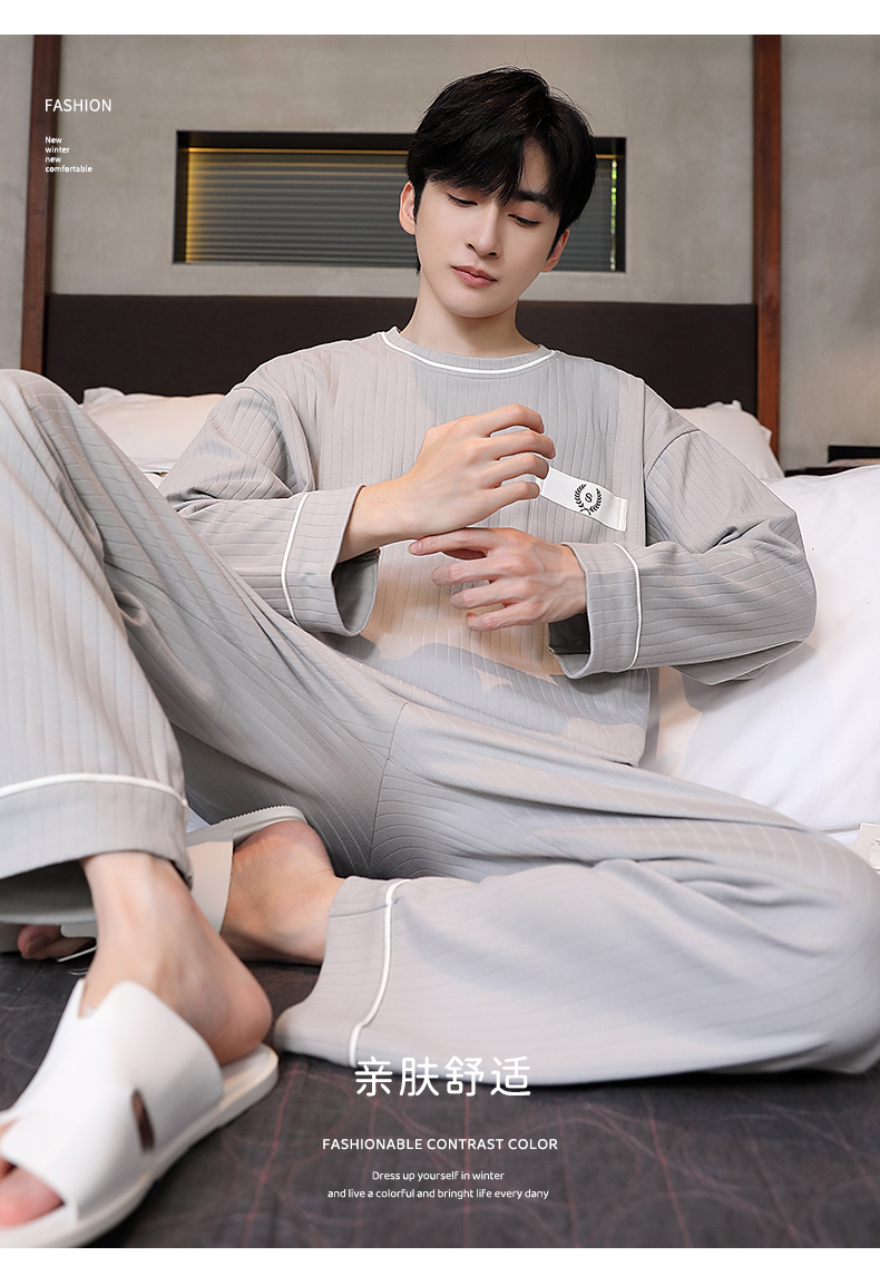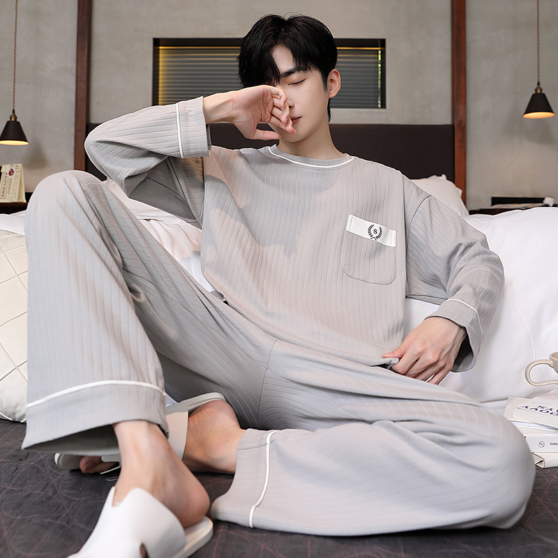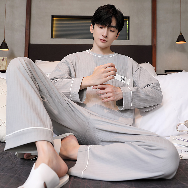 男士睡衣春秋季男睡衣休闲简约宽松长袖长裤秋冬可外穿