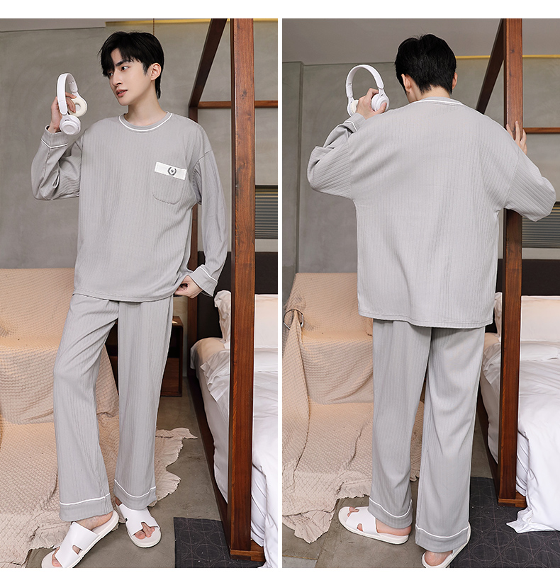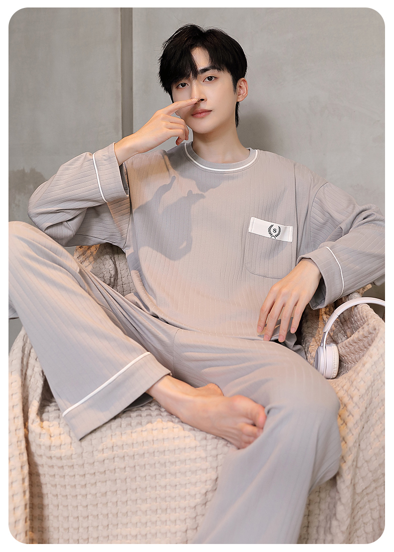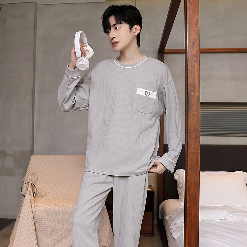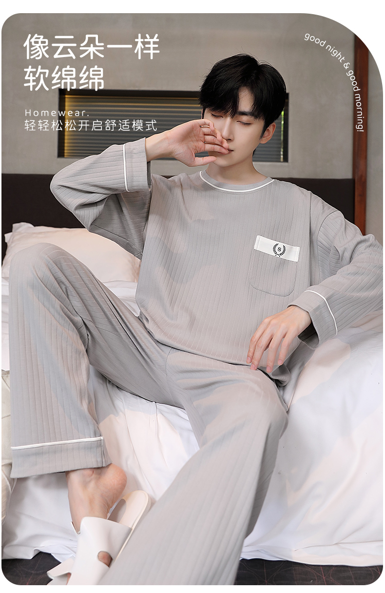 男士睡衣春秋季男睡衣休闲简约宽松长袖长裤秋冬可外穿