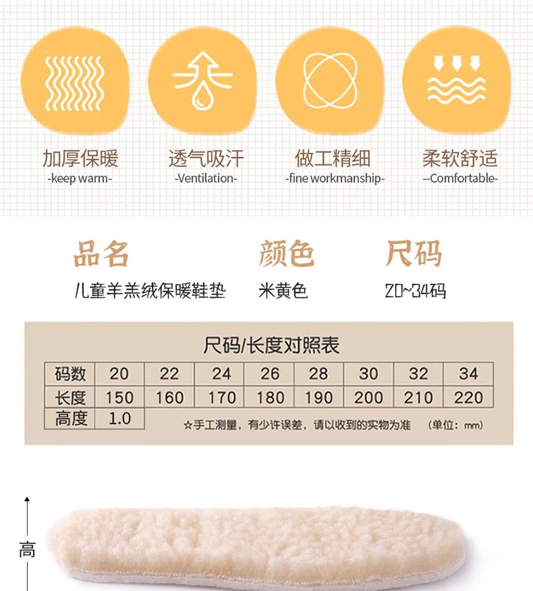 - ¥9.90米色【2双】儿童加绒_舒适保暖,34-35(【可裁剪】)