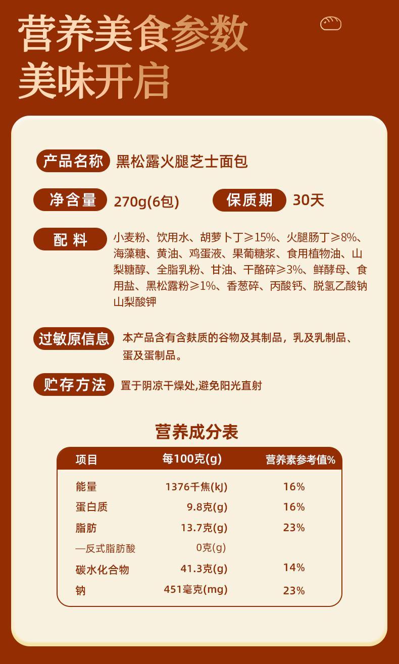 - ¥7.90 270g(巴拿米黑松露火腿芝士面包270g)