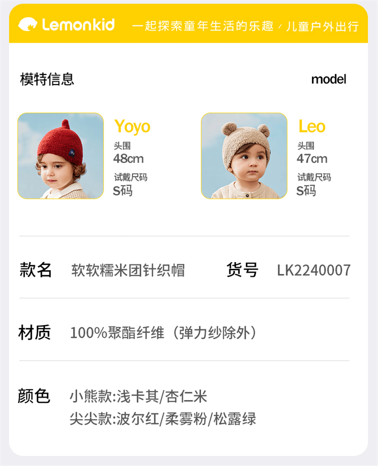 自从给宝宝买了这款柠檬宝宝软软糯米团新年红针织帽,真的是既放心又满意!作为秋冬季节的防风抗寒必备,它的加厚设计确实非常保暖,小宝贝戴上后,即使在寒冷的户外玩耍,小手也不再总去扯帽子,说明真的很舒适。