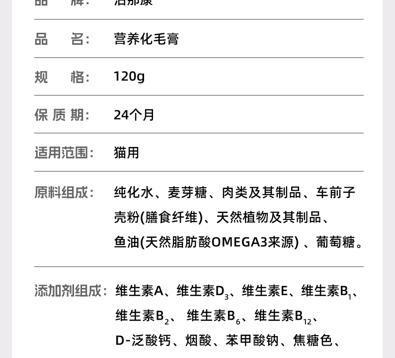- ¥12.80 【排毛补营养】1支鱼油营养化毛膏,120g/支