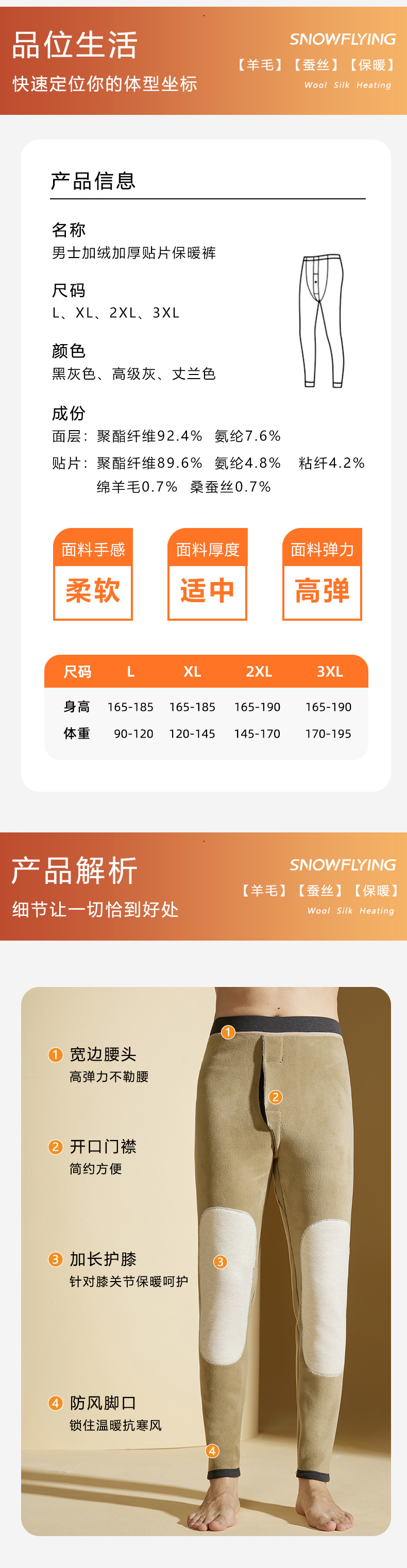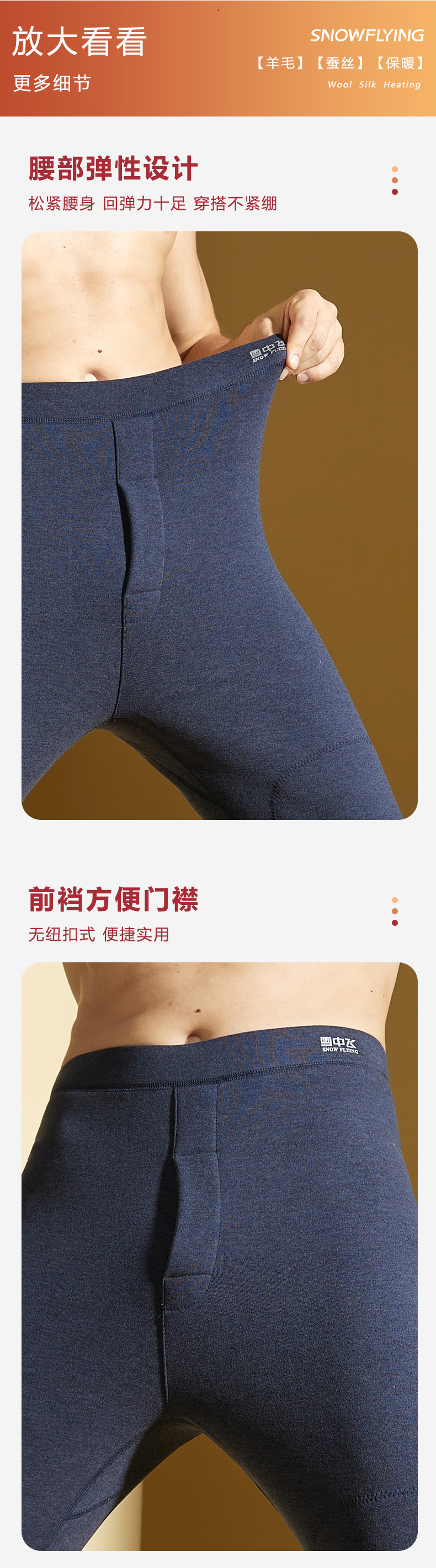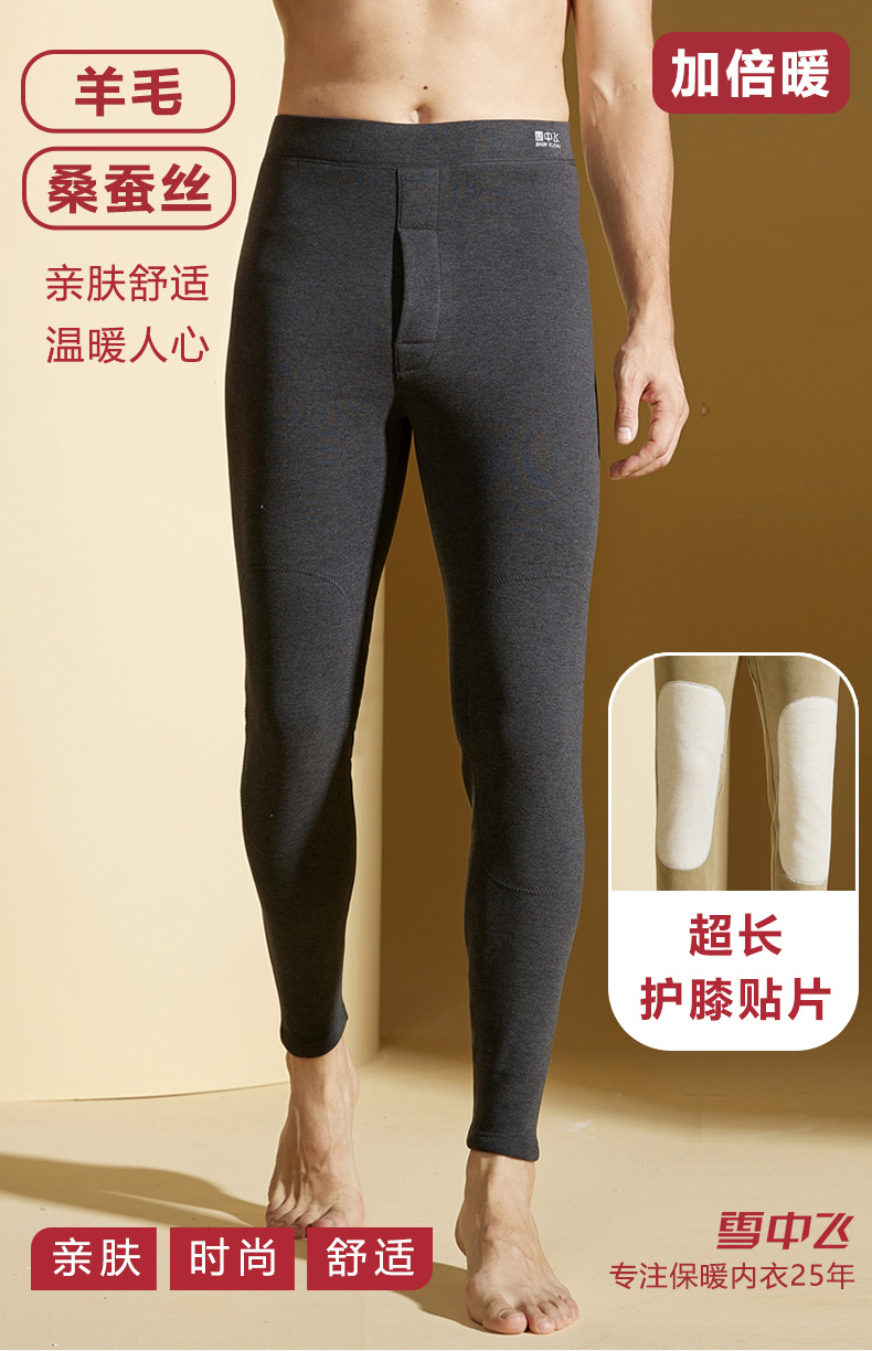这款雪中飞男士羊毛蚕丝贴片护膝秋裤的保暖效果超乎想象,即便是寒冷的秋冬季节,穿上它也能感受到持续的温暖与舒适。