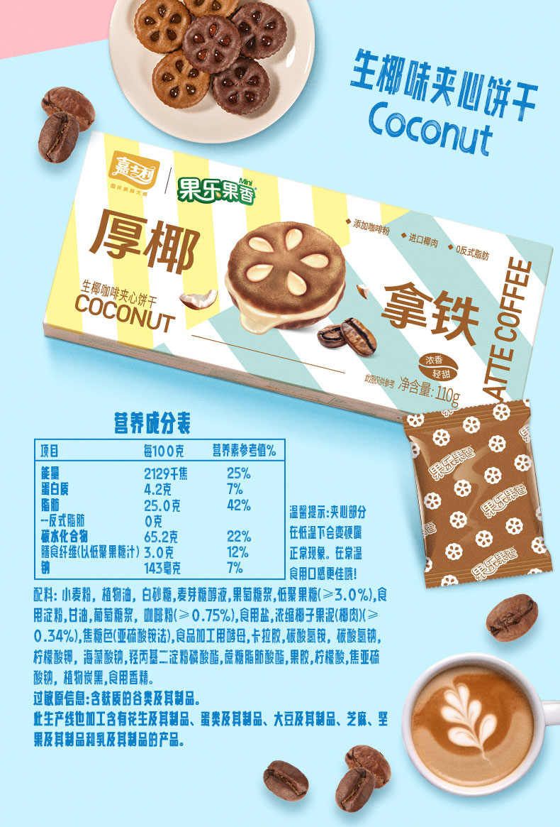 厚巧红桑夹心饼干110g*2盒+厚椰拿铁夹心饼干110g*2盒