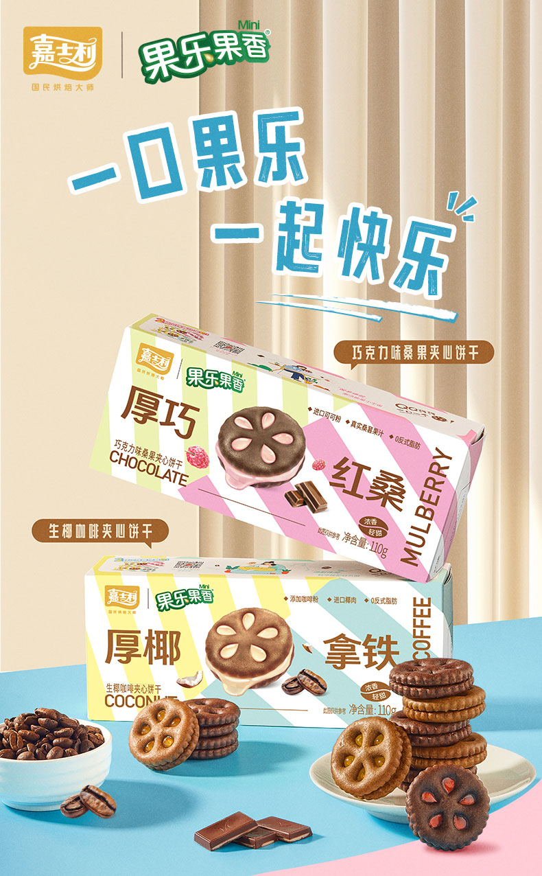 【果乐升级款】嘉士利厚巧果乐果香110g夹心饼果酱拉丝独立包装饼干