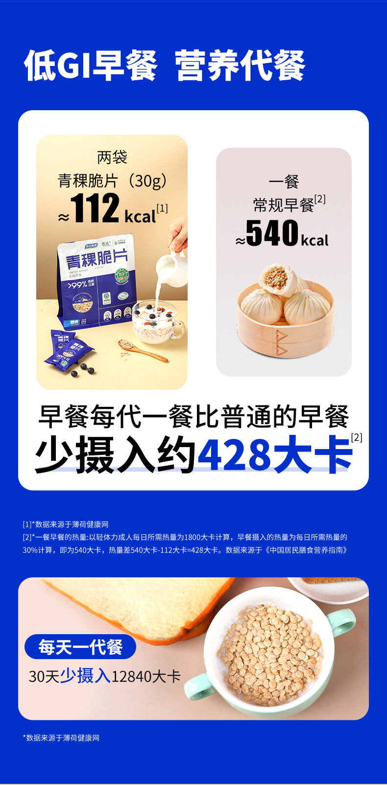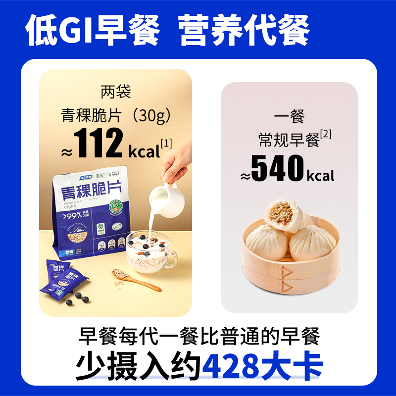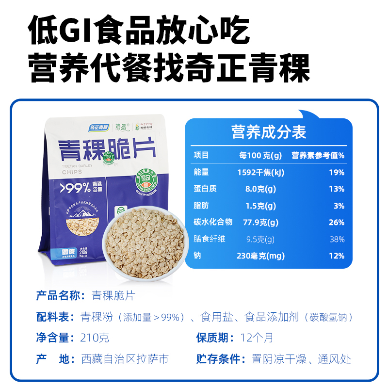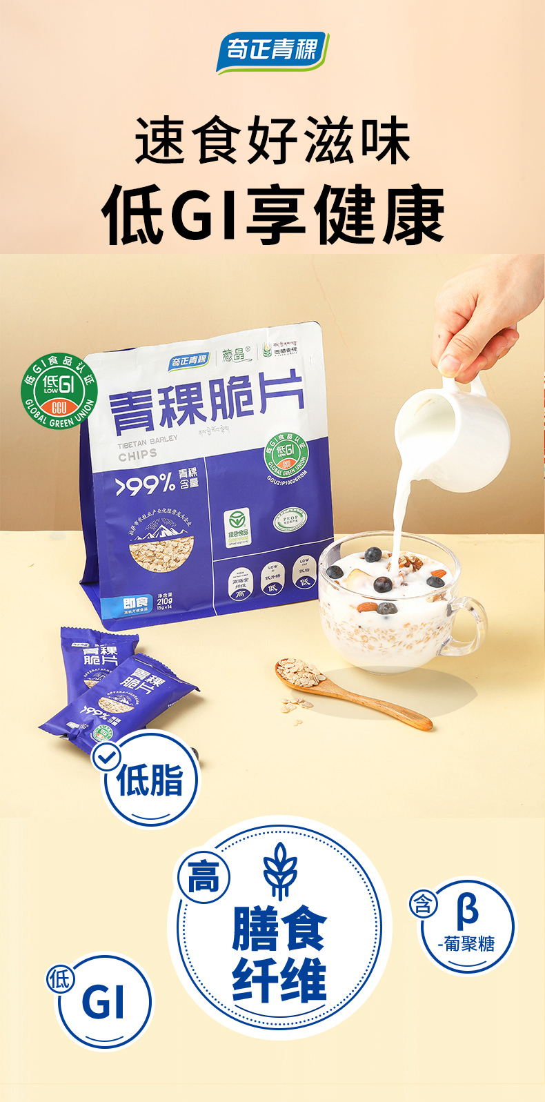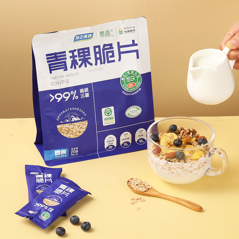 【达人专享】低GI青稞脆片低脂无蔗糖即食冲饮独立小包装210g*2袋