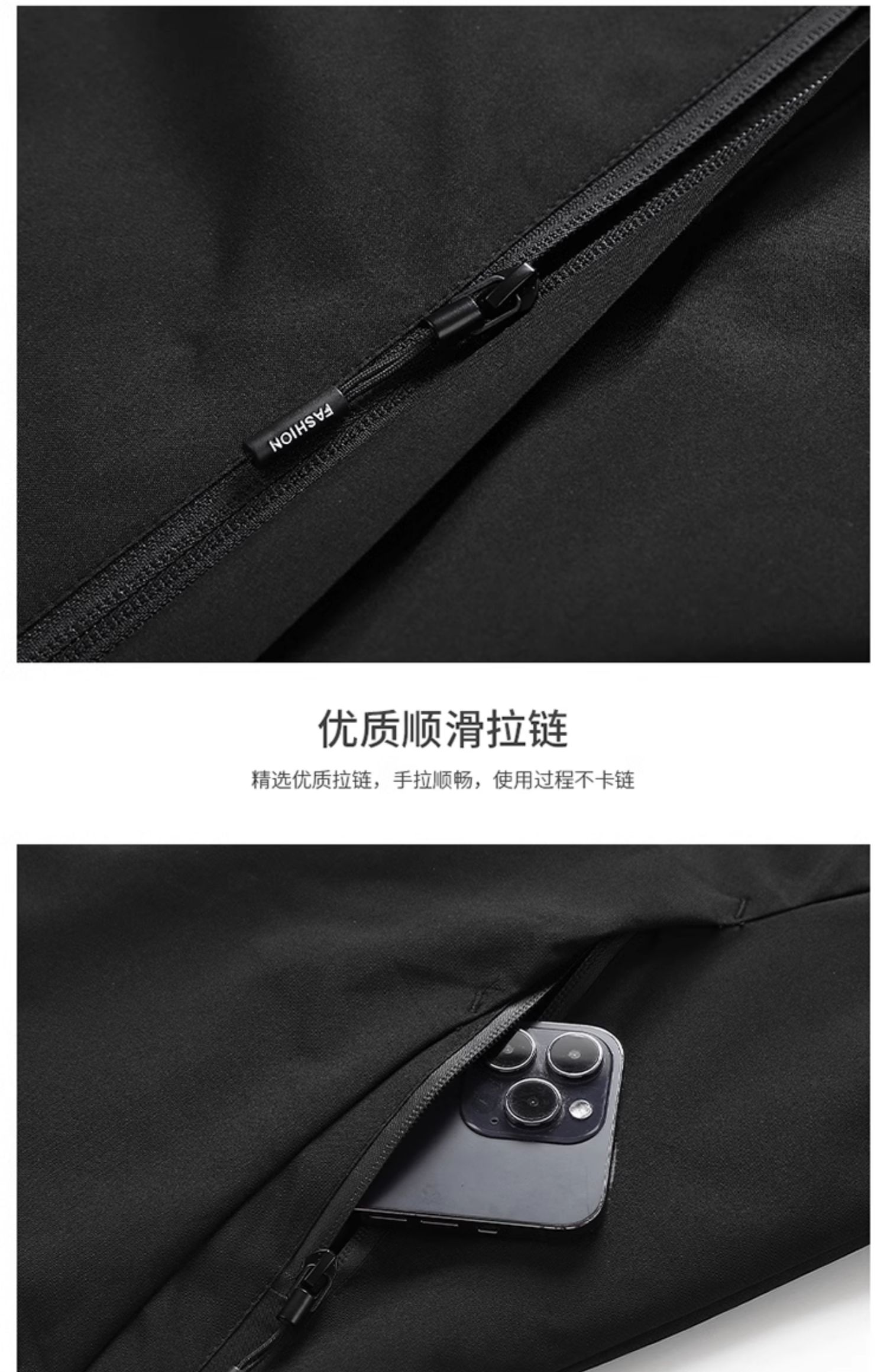 以下是针对该商品不同特性的买家评论,涵盖颜色、款式、功能及性价比等方面,供您参考: ### **单夹克款(黑色/米白/灰色)**