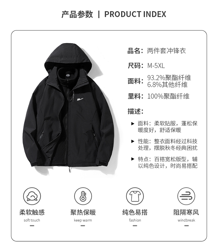 - ¥159.00黑色(可拆卸内胆)((三合一)),4XL(175-195斤)