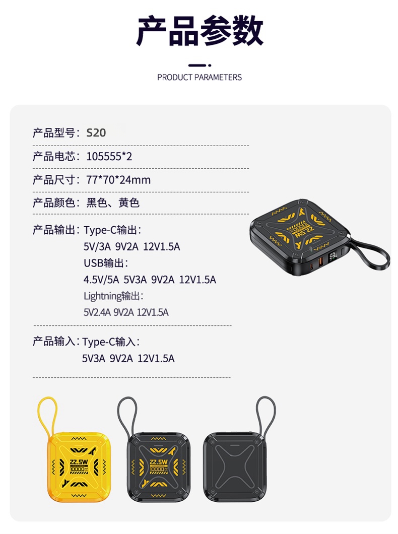 ☆战甲黄☆【自带线+双向快充】,10000mAh-新国标3C认证,22.5W