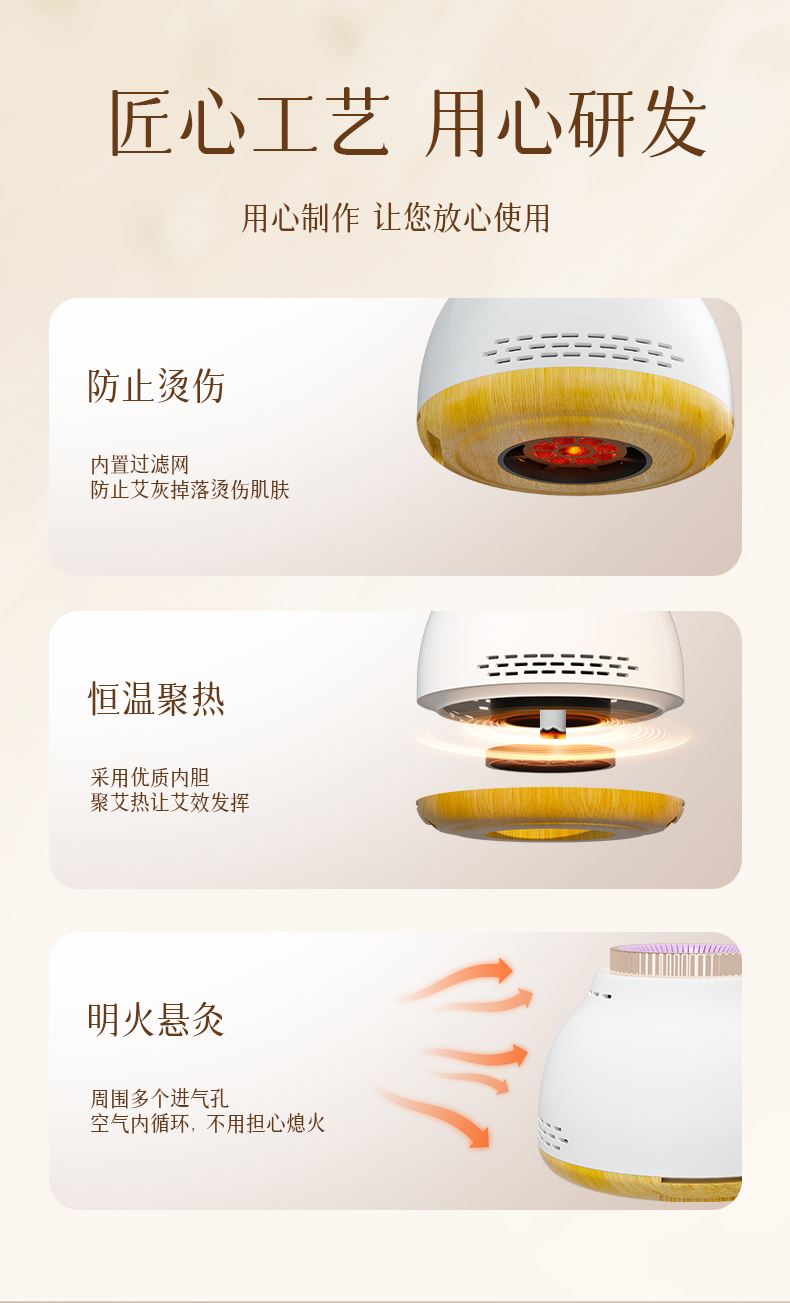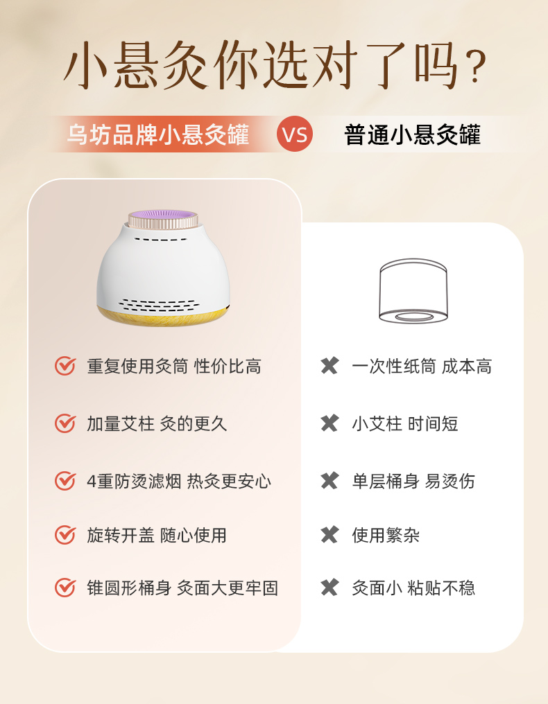 这款乌坊多功能无烟艾灸罐的设计非常贴心,无论是白色还是黑色的外观,都显得高端大气,而且材质摸起来很有质感,拿在手里既轻便又稳固。最让我惊喜的是它的无烟设计,对于像我这样在家做艾灸又怕烟雾缭绕的人来说,简直是福音!使用过程中完全没有传统艾灸的烟熏味,只有淡淡的艾草香,让人非常放松。