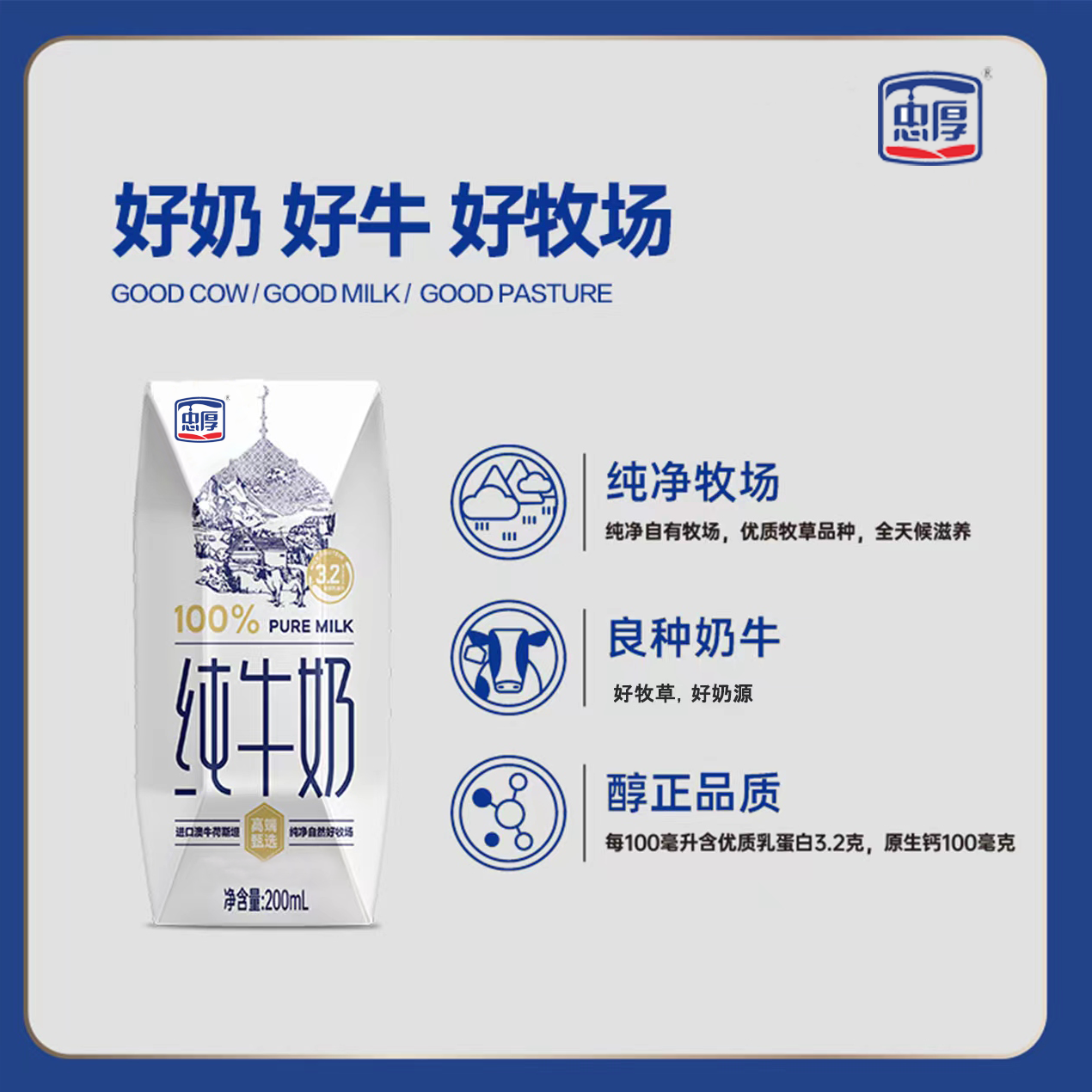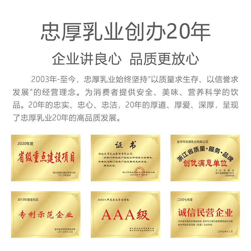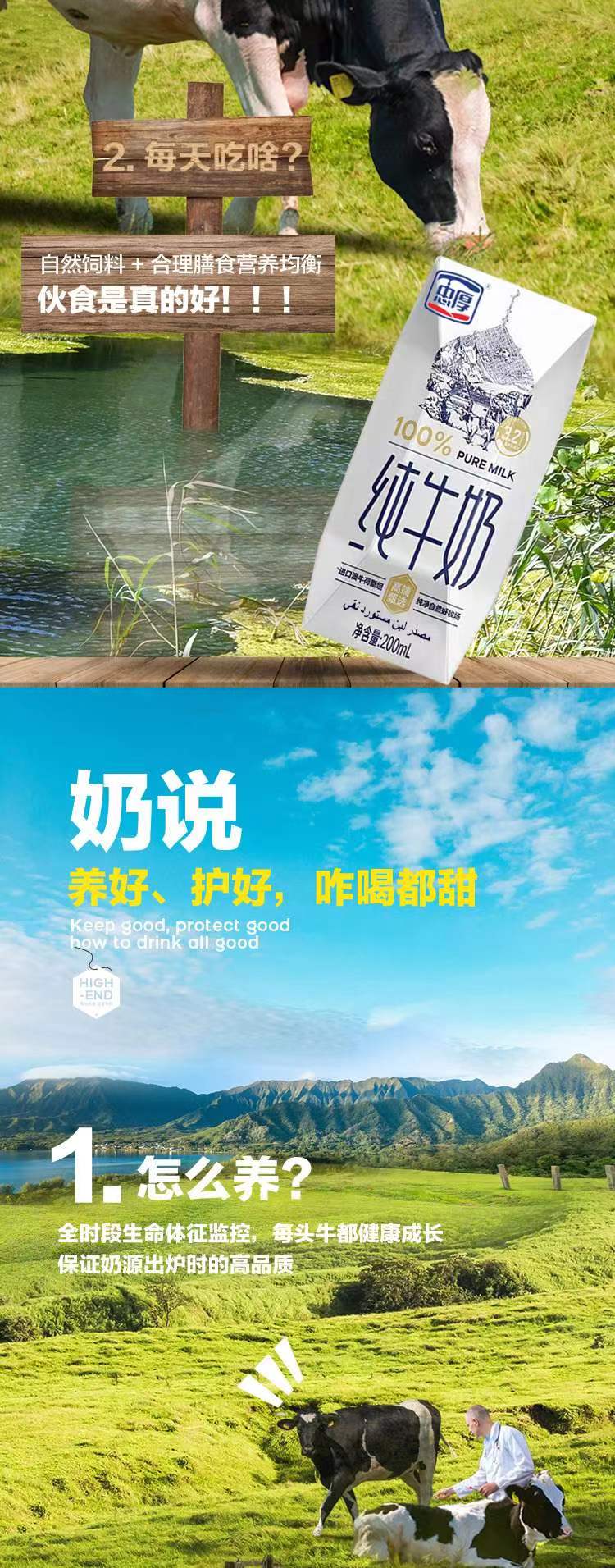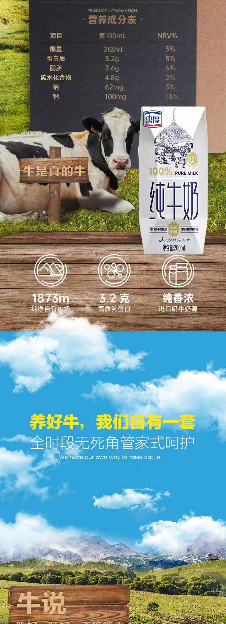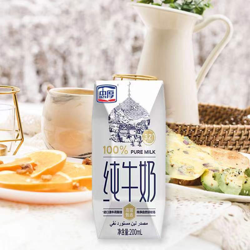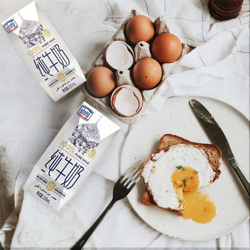 【新鲜日期】忠厚纯牛奶200ml*10盒 全脂老人小孩学生生牛乳