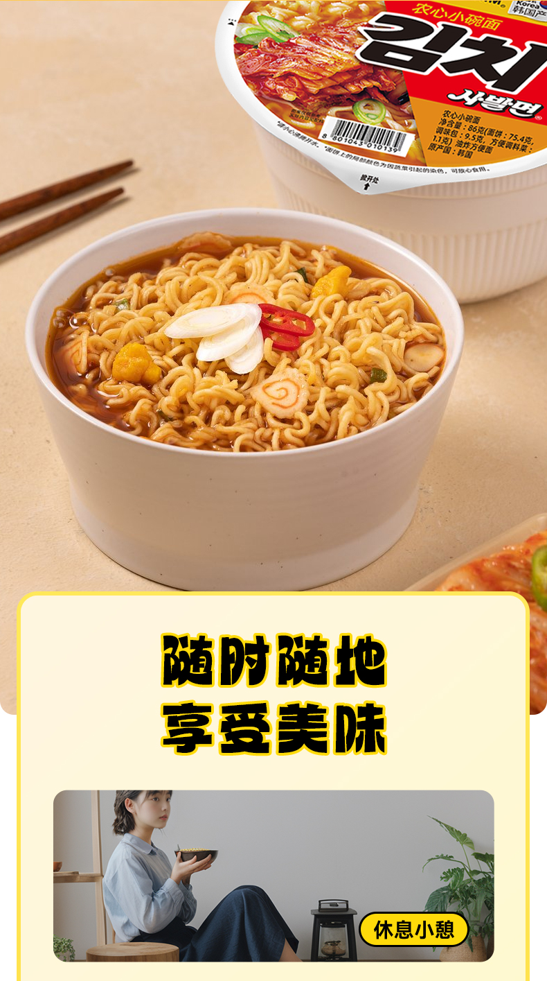 自从在这家店铺入手了农心韩国原装进口的牛肉碗面和泡菜小碗面,我的速食选择就再也没有让我失望过!这次我购买的是牛肉味6碗装,每碗86克的分量刚刚好,既满足了味蕾的需求,又不会让人感到过分饱胀。