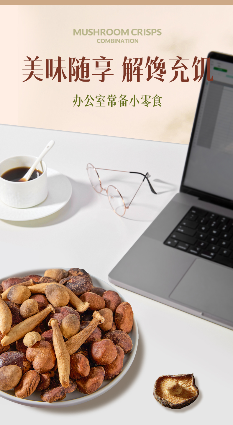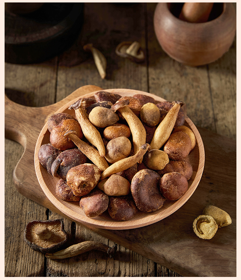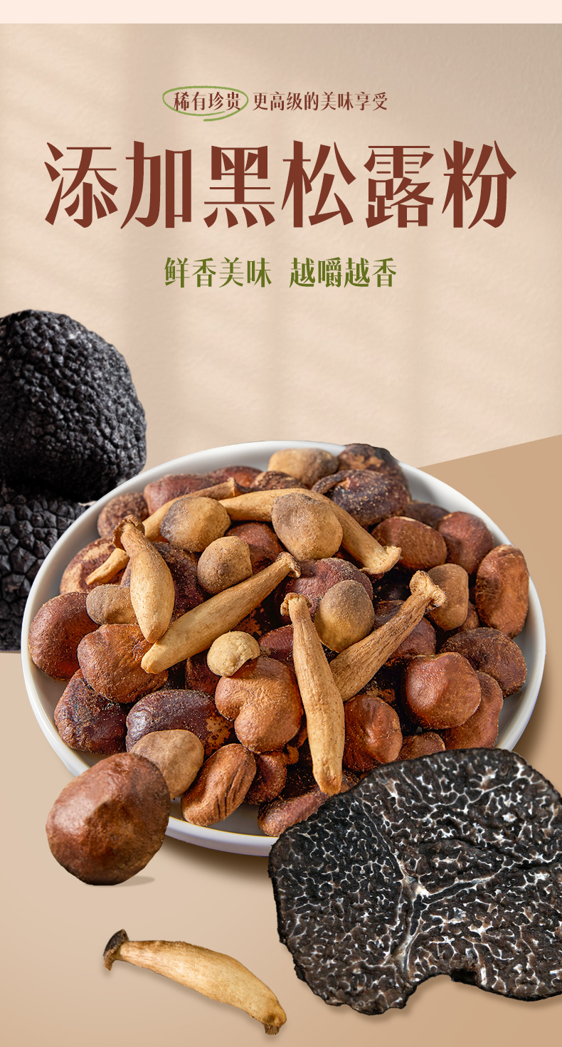 巨香巨脆的口感,每一口都是鲜香的黑松露与多种菌菇的交响,鲜香美味,比薯片还要好吃很多,越嚼越香真的很伤透,而且很健康!
