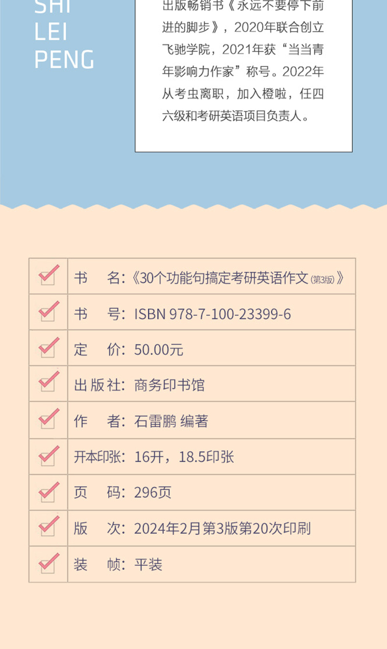石雷鹏 2026考研英语作文30个功能句 历年真题词汇复习 考点背诵