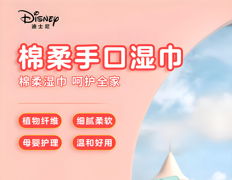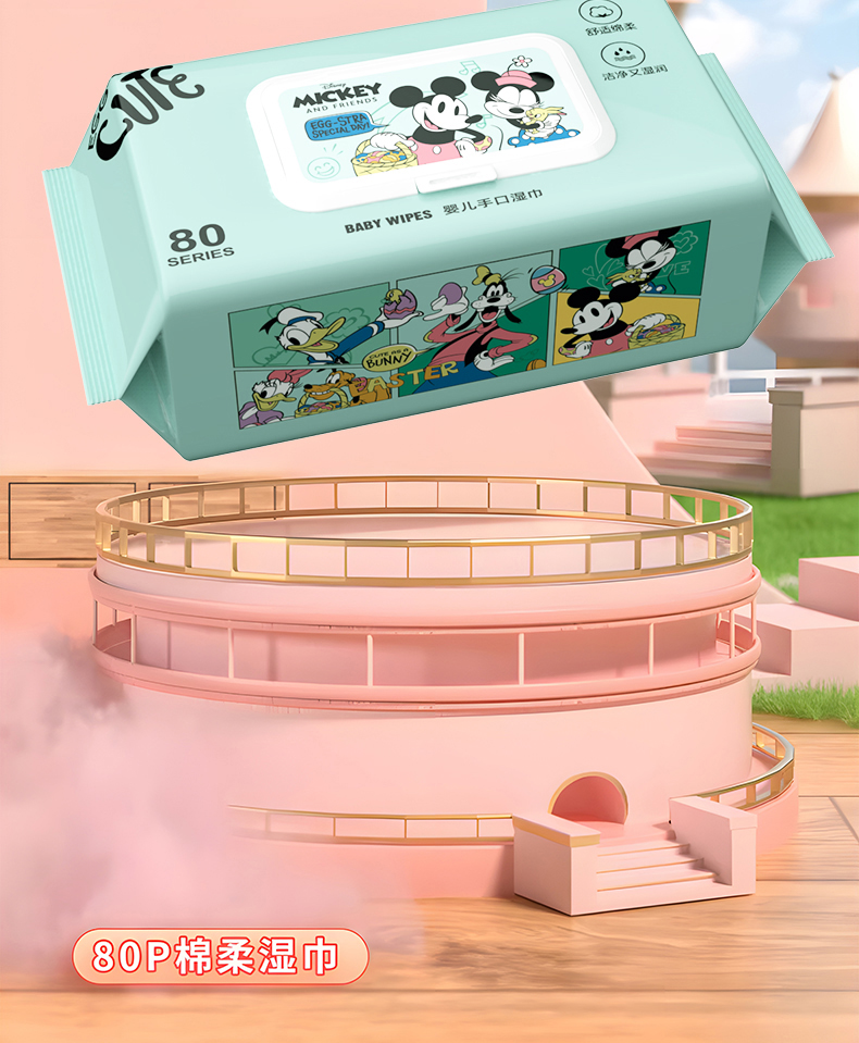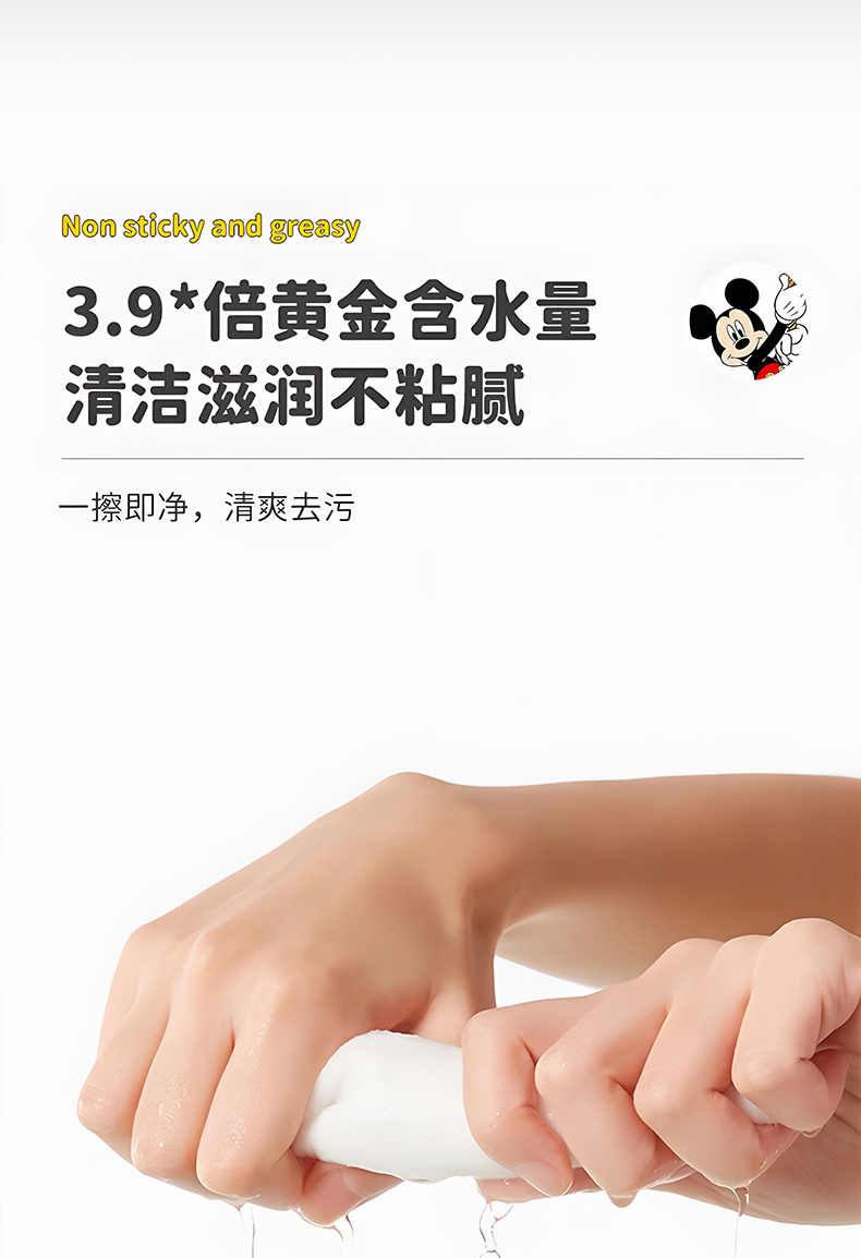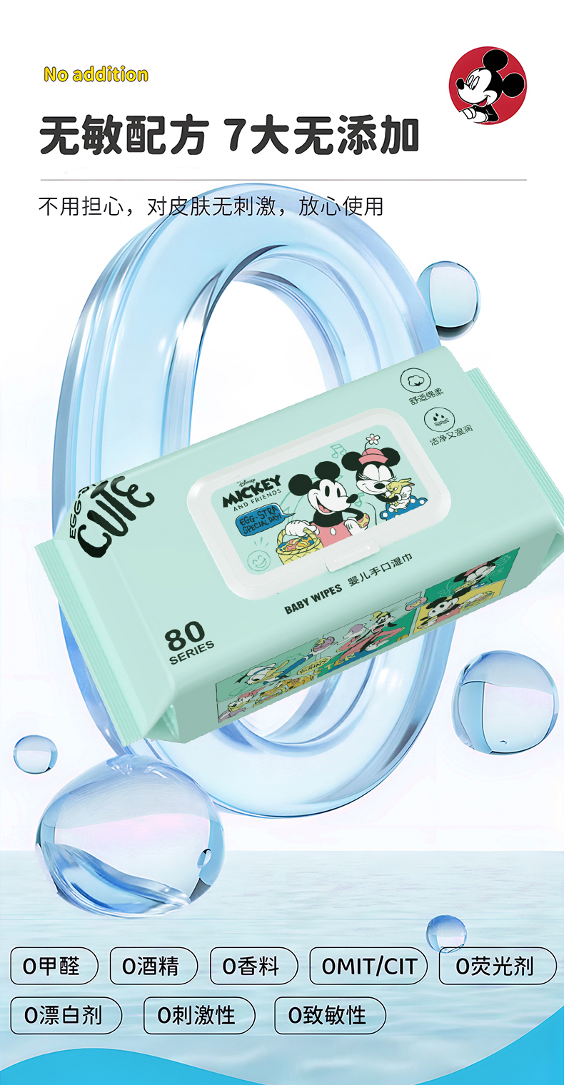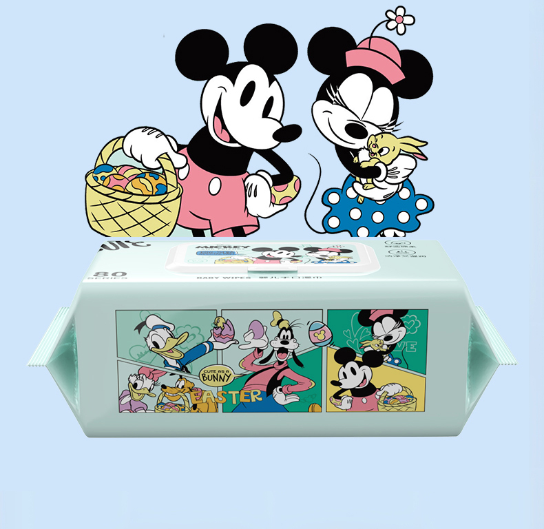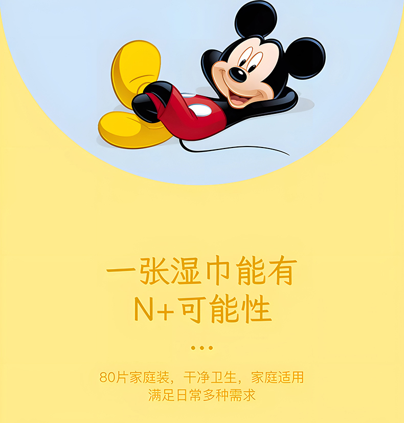 Disney/迪士尼80抽5包米奇爆款婴儿纯水湿巾家庭亲肤水润加厚耐用