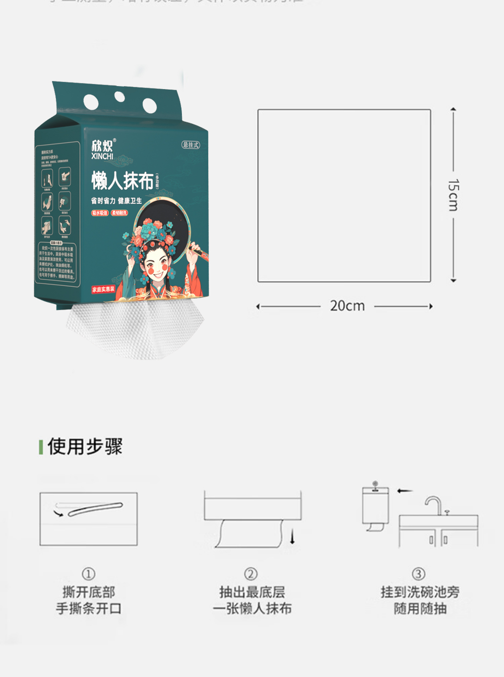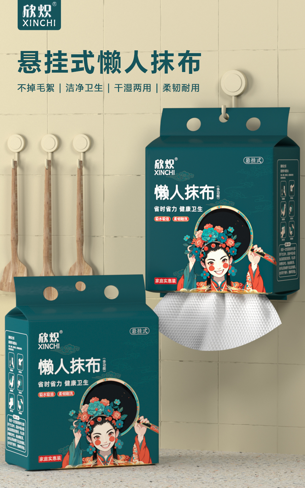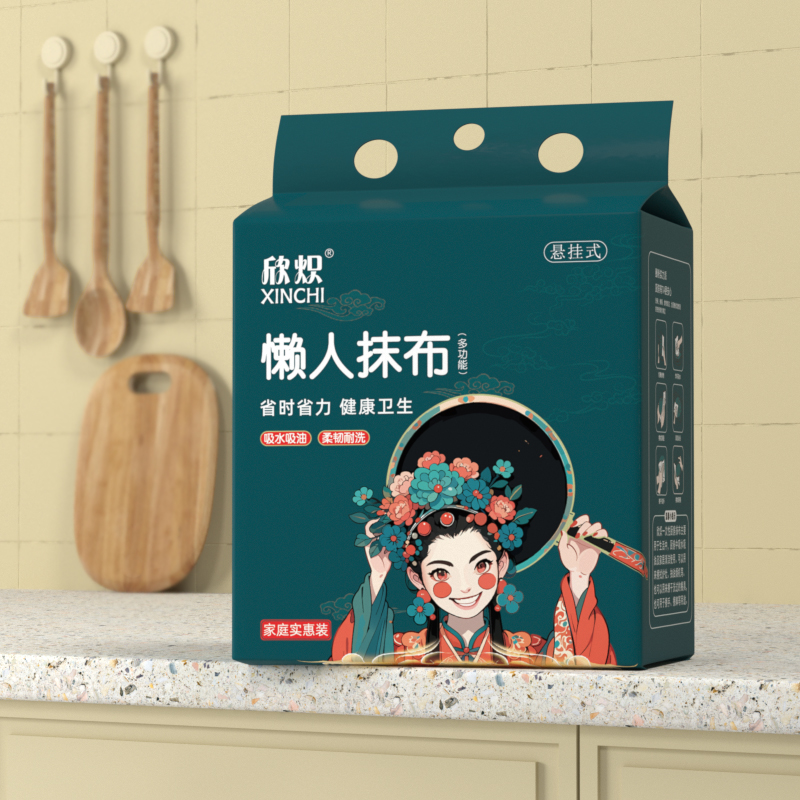 悬挂国潮厨房抹布一次性干湿两用清洁专用纸巾吸水不沾油洗碗抹布