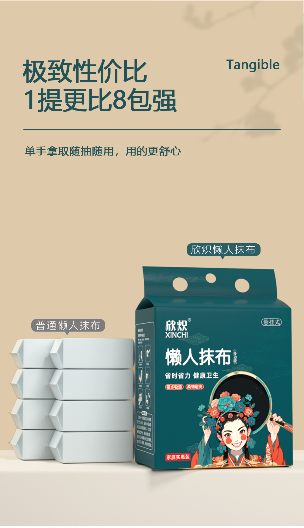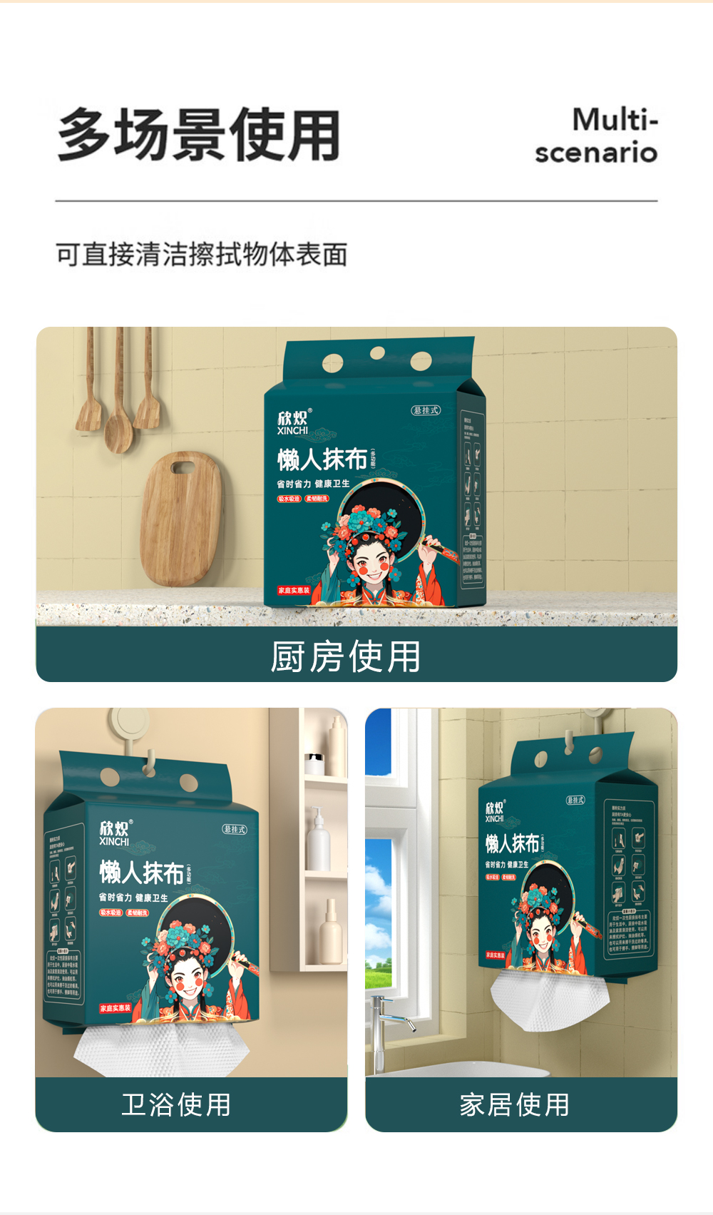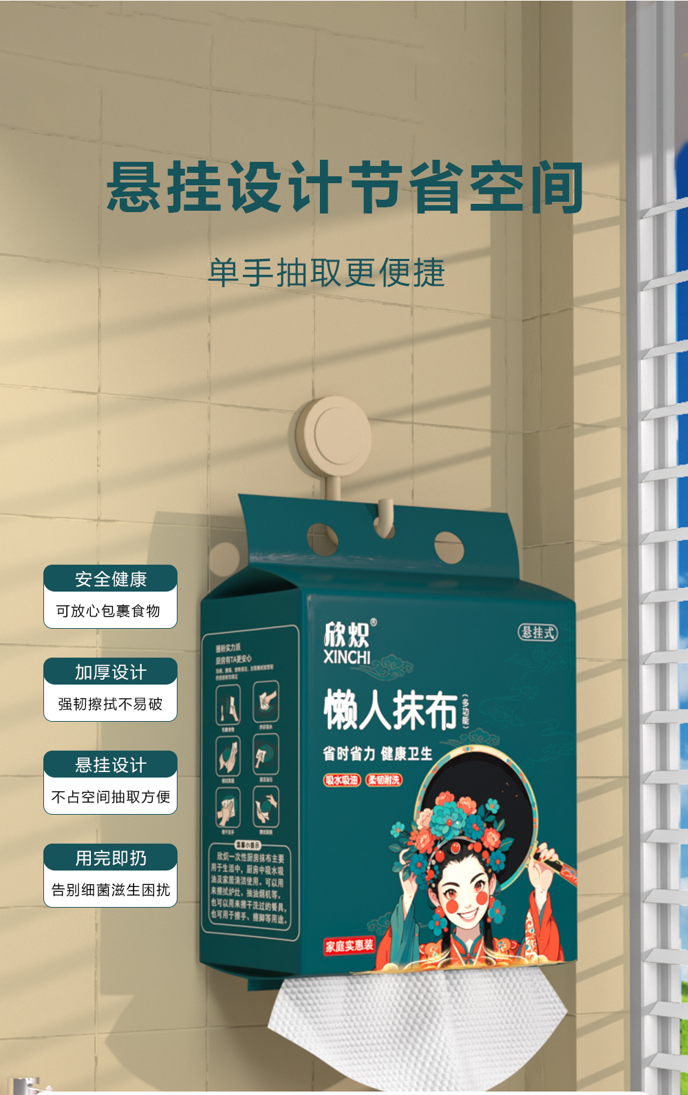 悬挂国潮厨房抹布一次性干湿两用清洁专用纸巾吸水不沾油洗碗抹布