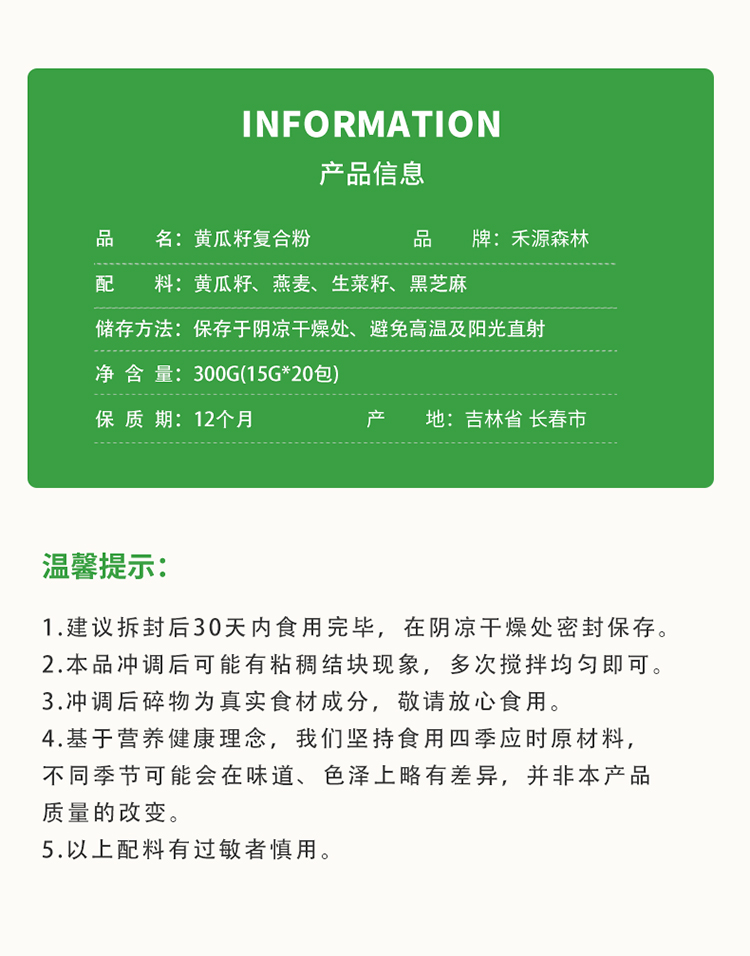配方升级禾源森林黄瓜籽粉复合粉300g/袋内含独立小包装食用营养