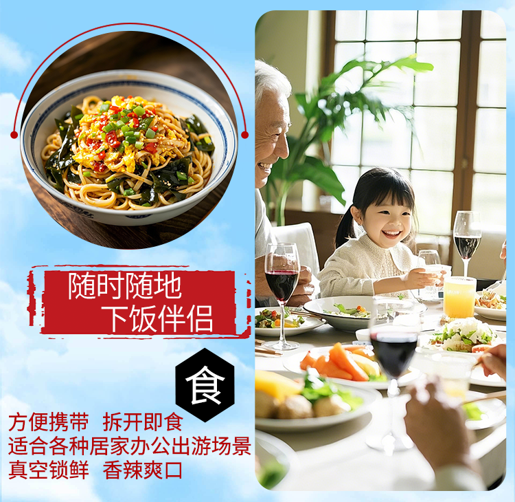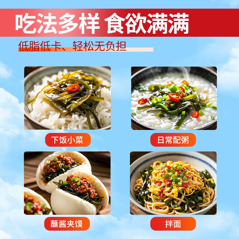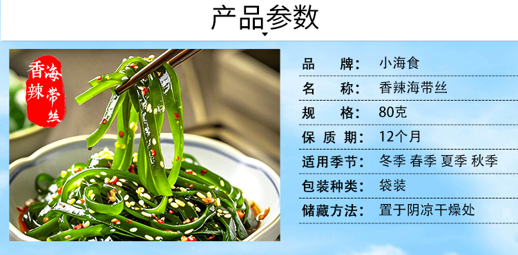 小海食香辣海带丝开袋即食下饭菜低脂低卡压缩小咸菜凉拌菜80g/袋