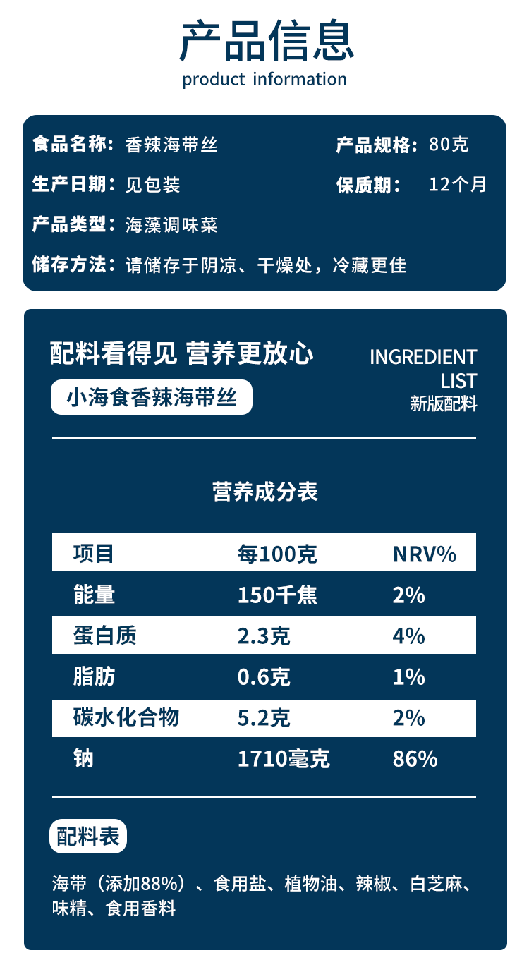 - ¥28.90 【95%人的选择更划算】香辣海带丝80g*18袋(共1440g)