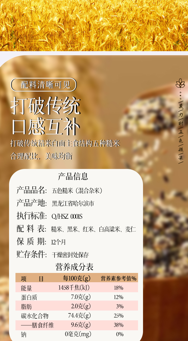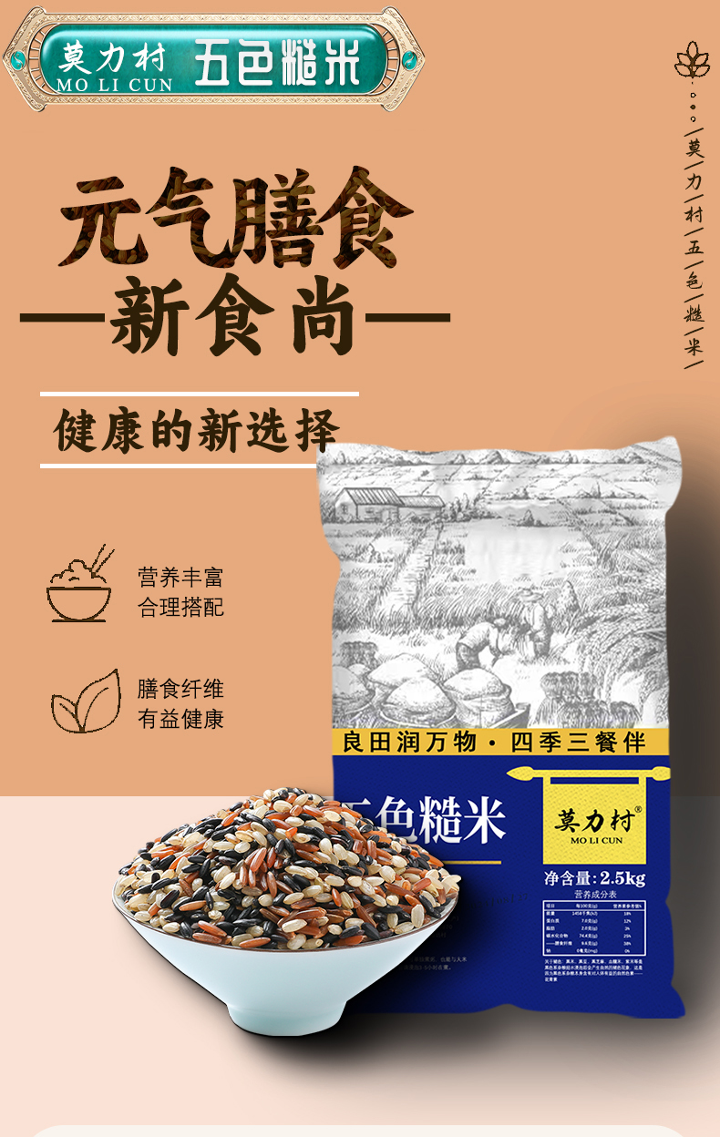 五色糙米5斤粗粮大米黑米主食饭新五谷杂粮健身