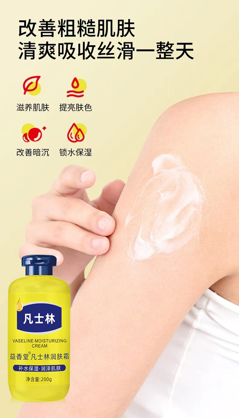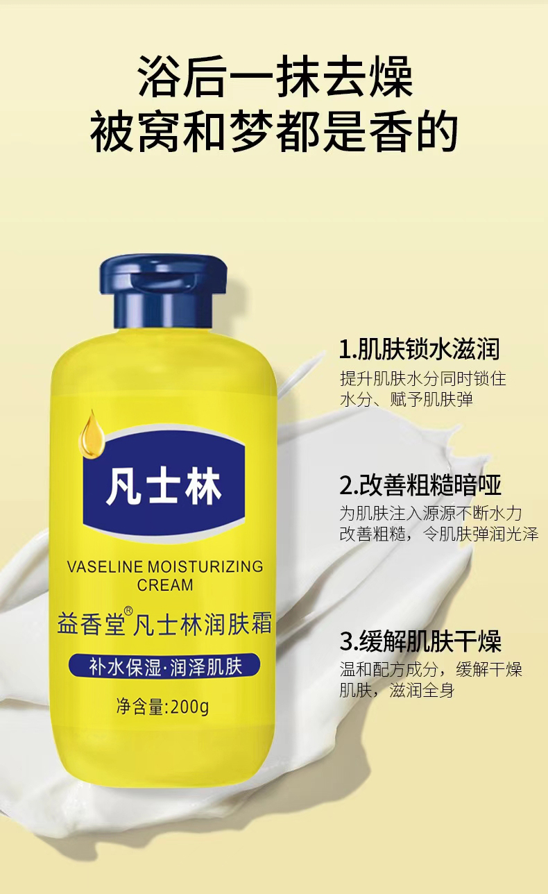 非常满意这次购物体验!首先,价格简直太划算了,4.99元就能拍到两瓶200g的凡士林身体乳,真是性价比超高,感觉像是捡到了大便宜! 收到货后,包装严实,没有破损,蓝盖的凡士林看起来就很有质感,简约又不失大气。打开瓶盖,一股淡淡的香味扑鼻而来,非常自然,让人感觉很舒服。 这款身体乳的质地非常细腻,很容易推开,吸收速度也很快,不会有油腻感。我每天早晚都会使用,不仅涂在身体上,有时候也会当作护手霜或者面霜来使用,效果一样很棒。它真的能有效缓解皮肤干燥、干裂的问题,让我的肌肤变得柔软光滑,摸起来自己都爱不释手。 特别值得一提的是,“拍一发二”的活动真的太贴心了,不仅方便了我日常使用,还让我可以随时随地分享给家人朋友,一起享受这份滋润与呵护。真的是家庭必备的好物,强烈推荐给大家! 总之,这次购物我非常满意,无论是产品质量、性价比还是服务态度,都超出了我的预期。以后有需要还会再来光顾的,希望店家能一直保持这样的品质和服务!