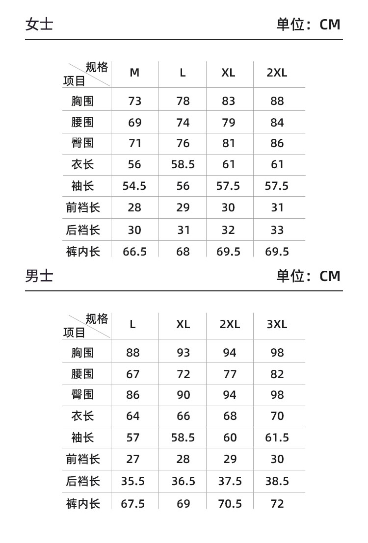 - ¥169.00 女款套装2.0~肤色(190g/㎡),男士2XL【建议体重141~170斤具体结合身高参考详情推荐】