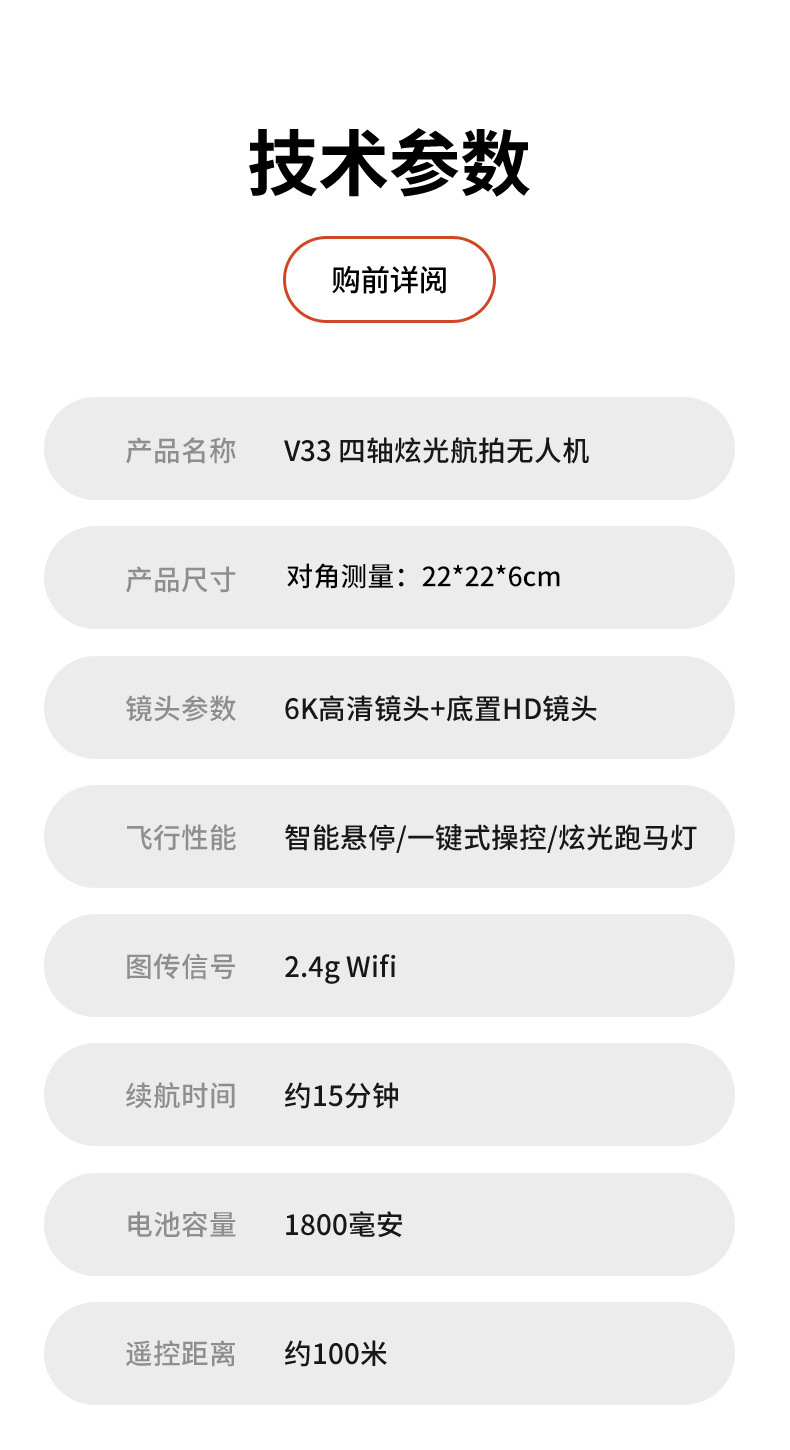 - ¥196.90V33-定高无航拍-灯光可控,双电套餐-一个备用电池