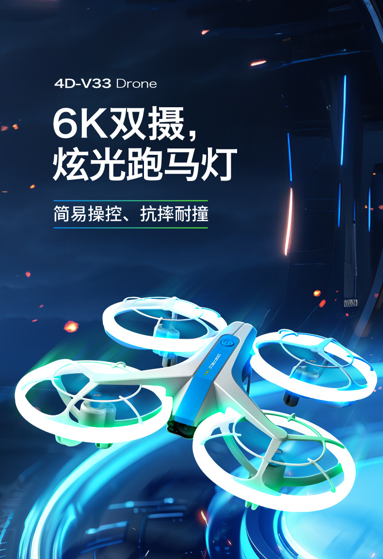 - ¥220.90V33-定高无航拍-灯光可控,三电套餐-二个备用电池