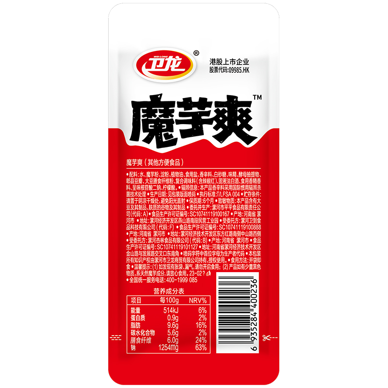- ¥12.9017g*1包,(共22包)魔芋爽【麻辣味】16包+6小包8.88g香辣魔芋爽
