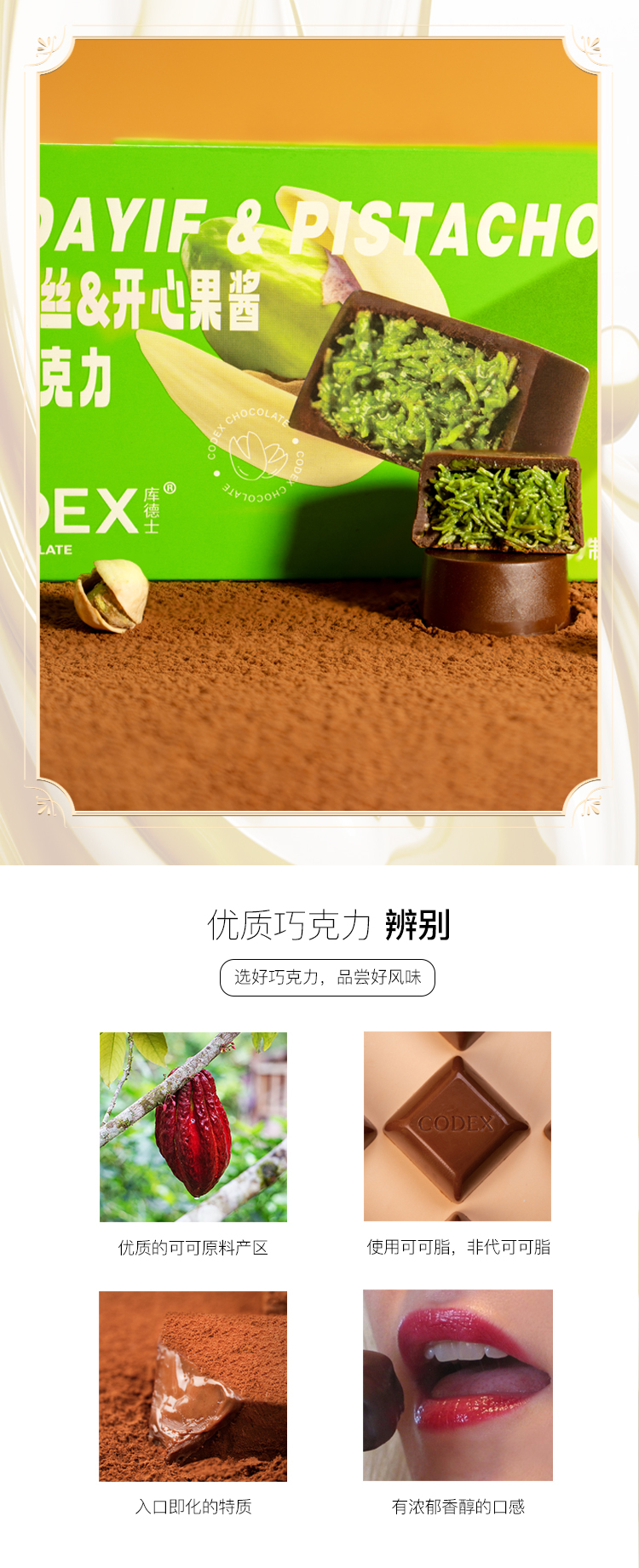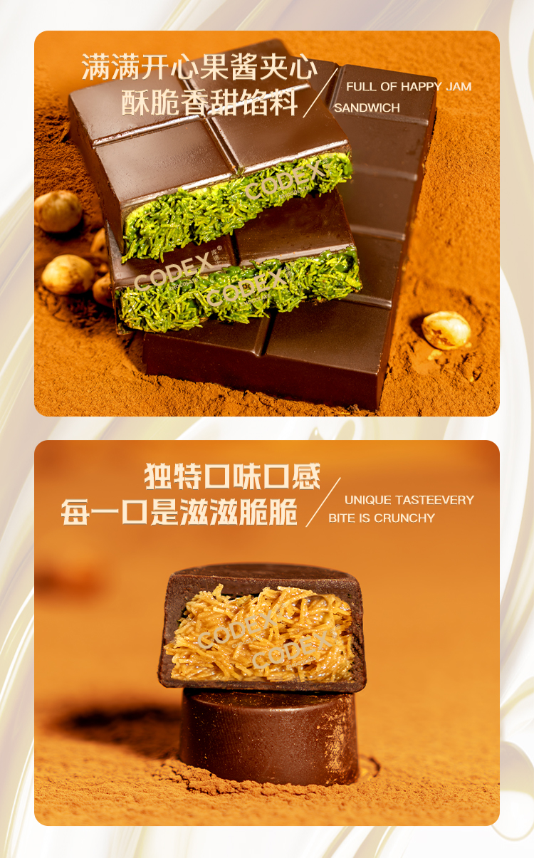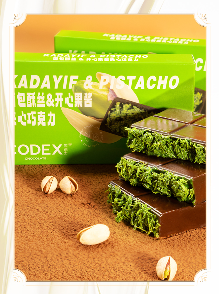 每一片都是精心制作的艺术品,酥脆的外层是轻轻一口就能感受到的极致享受,而内里的开心果酱夹心则是点睛之笔,甜而不腻,与巧克力的醇厚完美融合,层次分明,口感丰富。