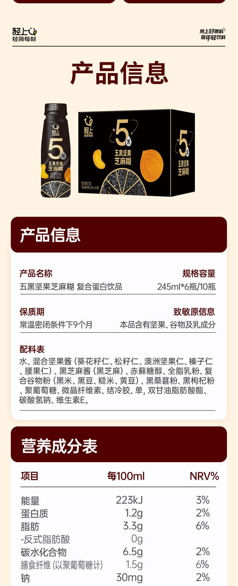 - ¥39.90五黑坚果芝麻糊,245ml*10瓶