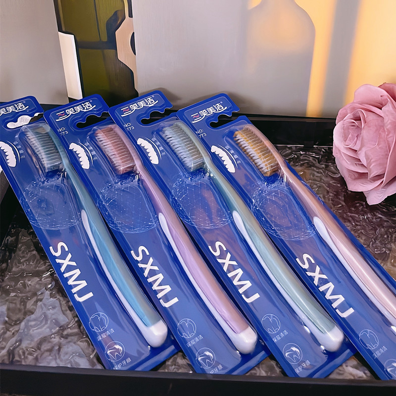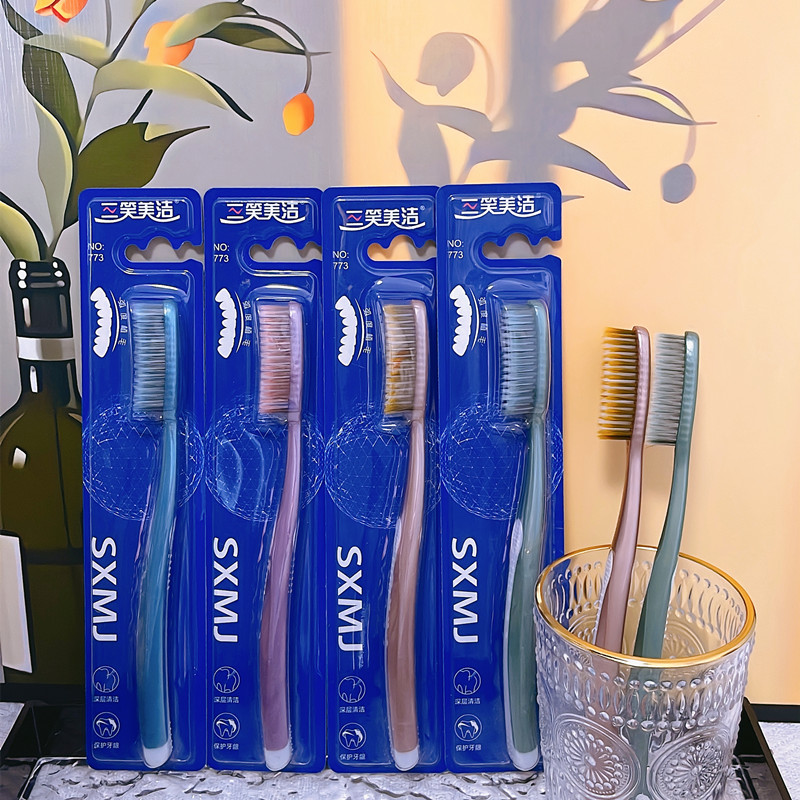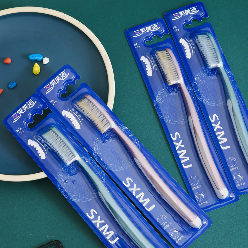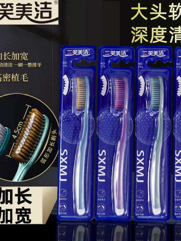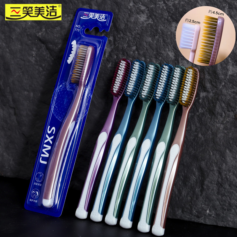 三笑美洁大头牙刷U型弧度长刷头独立包装软毛细丝家用硅胶防滑773