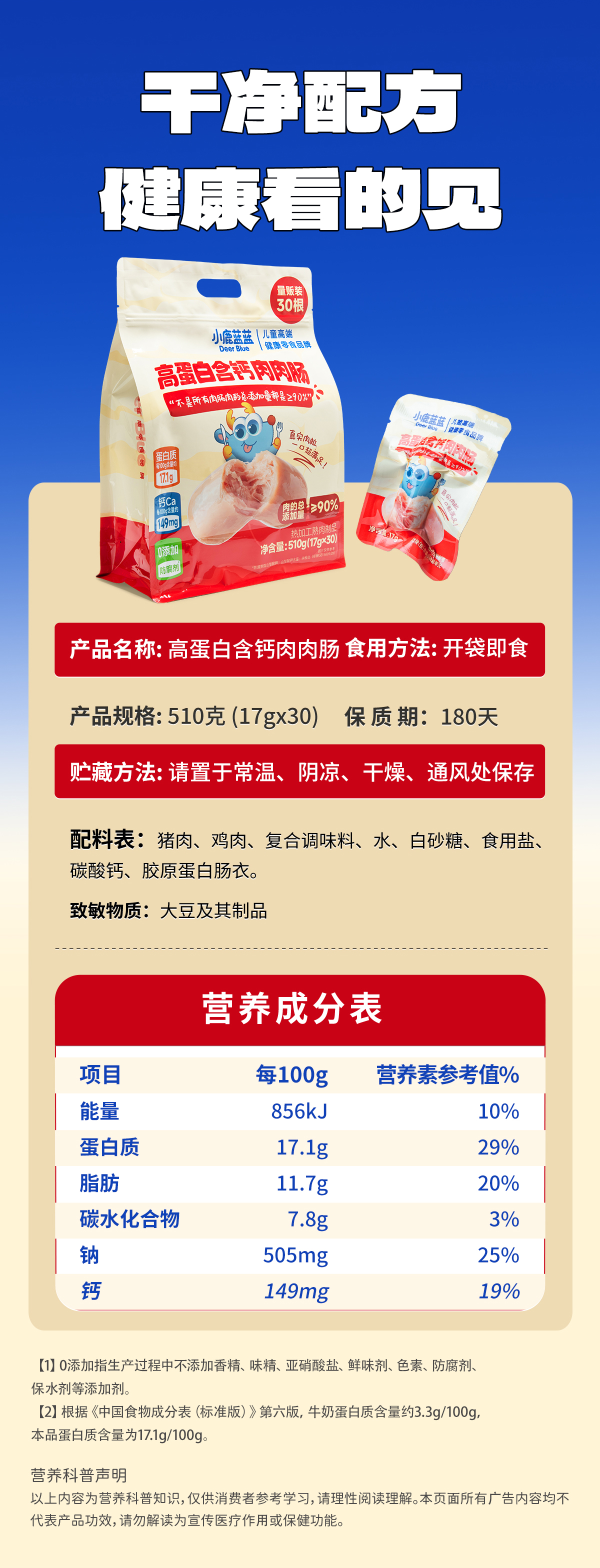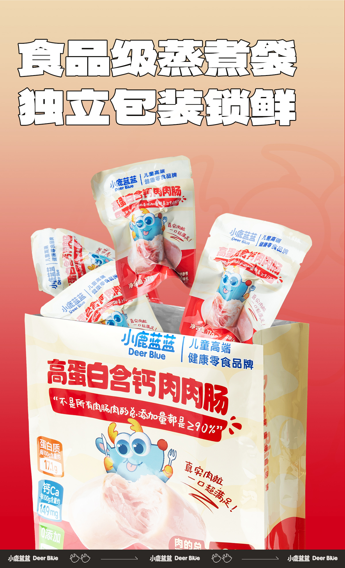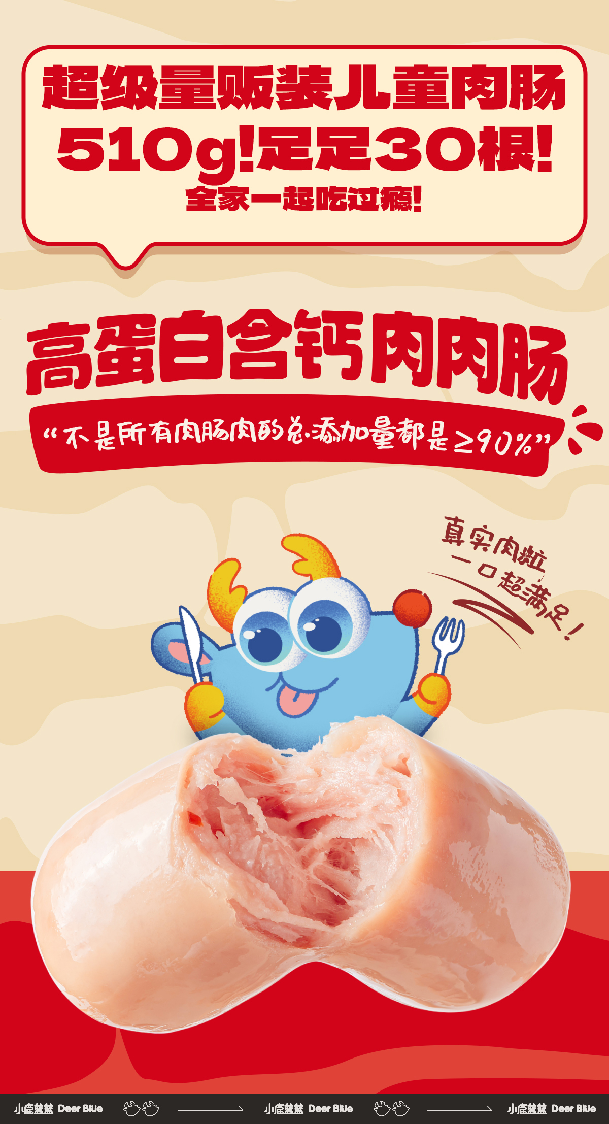 - ¥58.80小鹿蓝蓝_量贩高蛋白含钙肉肉肠510g*2袋