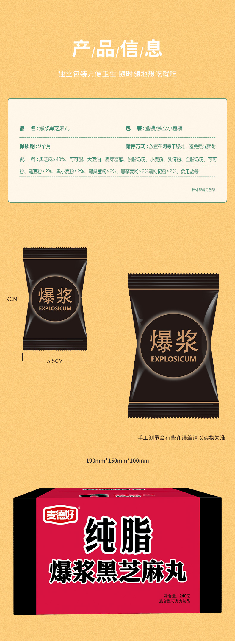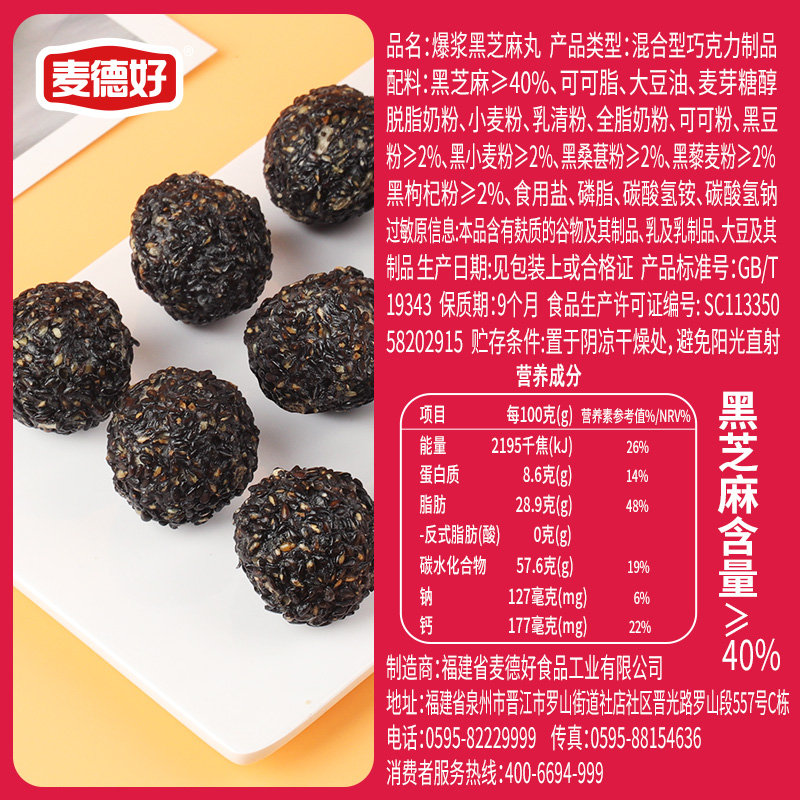 麦德好纯脂爆浆黑芝麻丸醇香芝麻球孕妇网红解馋严选休闲零食年货