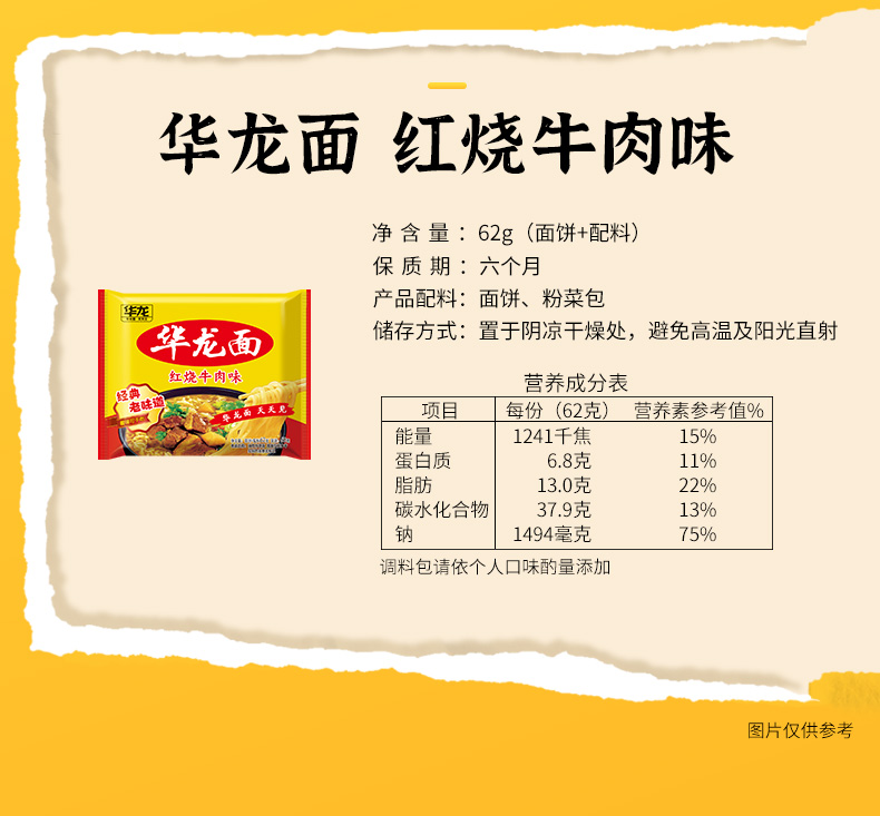 - ¥29.80✔红烧牛肉味62g*12袋+蟹黄味64g*12袋(混搭)