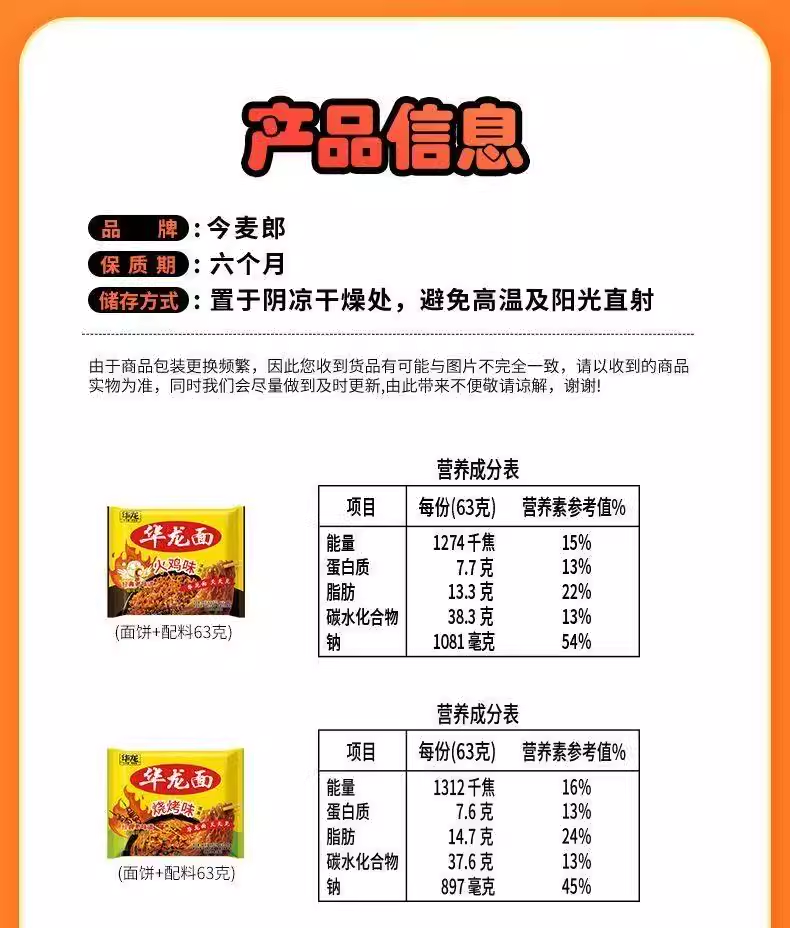 【买家评论】 非常满意的一次购物体验!今麦郎华龙面真的唤起了我的童年回忆,8090后的专属味道啊!这次直接入手了整箱,方便又实惠。 1. **包装与物流**:包装非常严实,没有任何破损,原箱发货让人很放心。物流速度也很快,没几天就收到了,赞一个! 2. **口味选择**:我选择了口味混合的,每包都是一个小惊喜,红烧牛肉味经典中的经典,麻辣牛肉味则带来了不一样的刺激感,满足了我对不同口味的需求,真是两全其美。 3. **品质与口感**:面条劲道有弹性,干吃或泡着吃都非常美味。调料包调味恰到好处,既保留了传统方便面的风味,又让人感觉更加健康。特别是干吃的时候,香脆可口,是追剧、加班时的最佳伴侣。 4. **性价比**:29.8元能买到整整24包,性价比超高!无论是自己享用还是分享给朋友,都是极好的选择。 5. **怀旧情怀**:每次吃这款方便面,都仿佛回到了小时候,和伙伴们一起分享美食的快乐时光。这种怀旧的感觉,真是无价之宝。 总之,这次购物非常愉快,今麦郎华龙面不仅味道好,还承载着满满的童年记忆。强烈推荐给喜欢怀旧、追求性价比的朋友们!